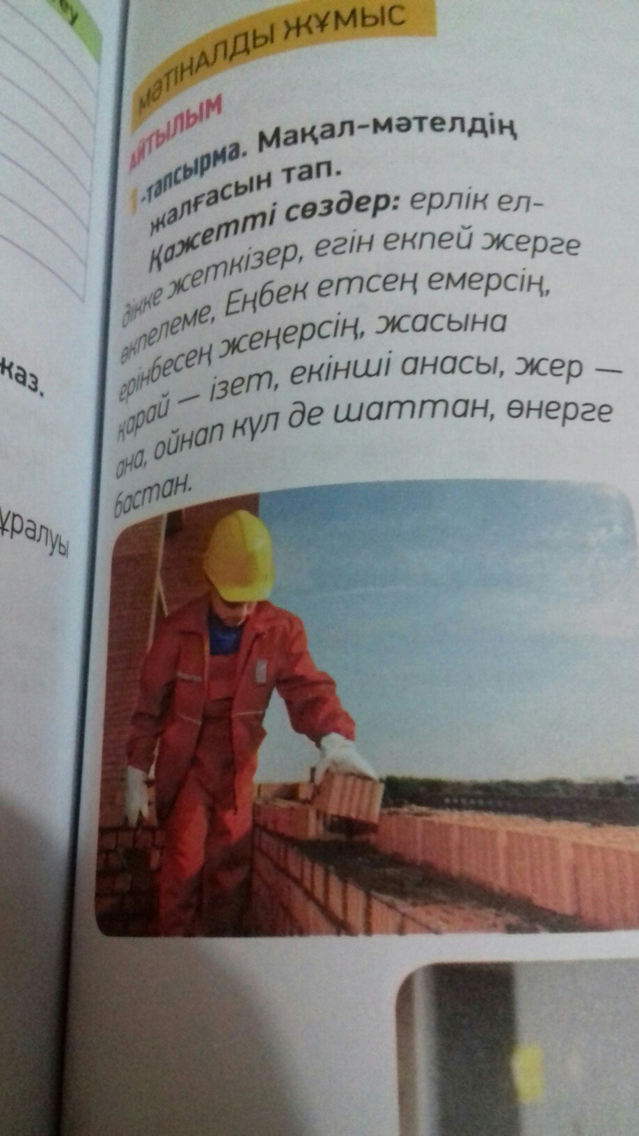 Еңбек — ата, жер — ана.