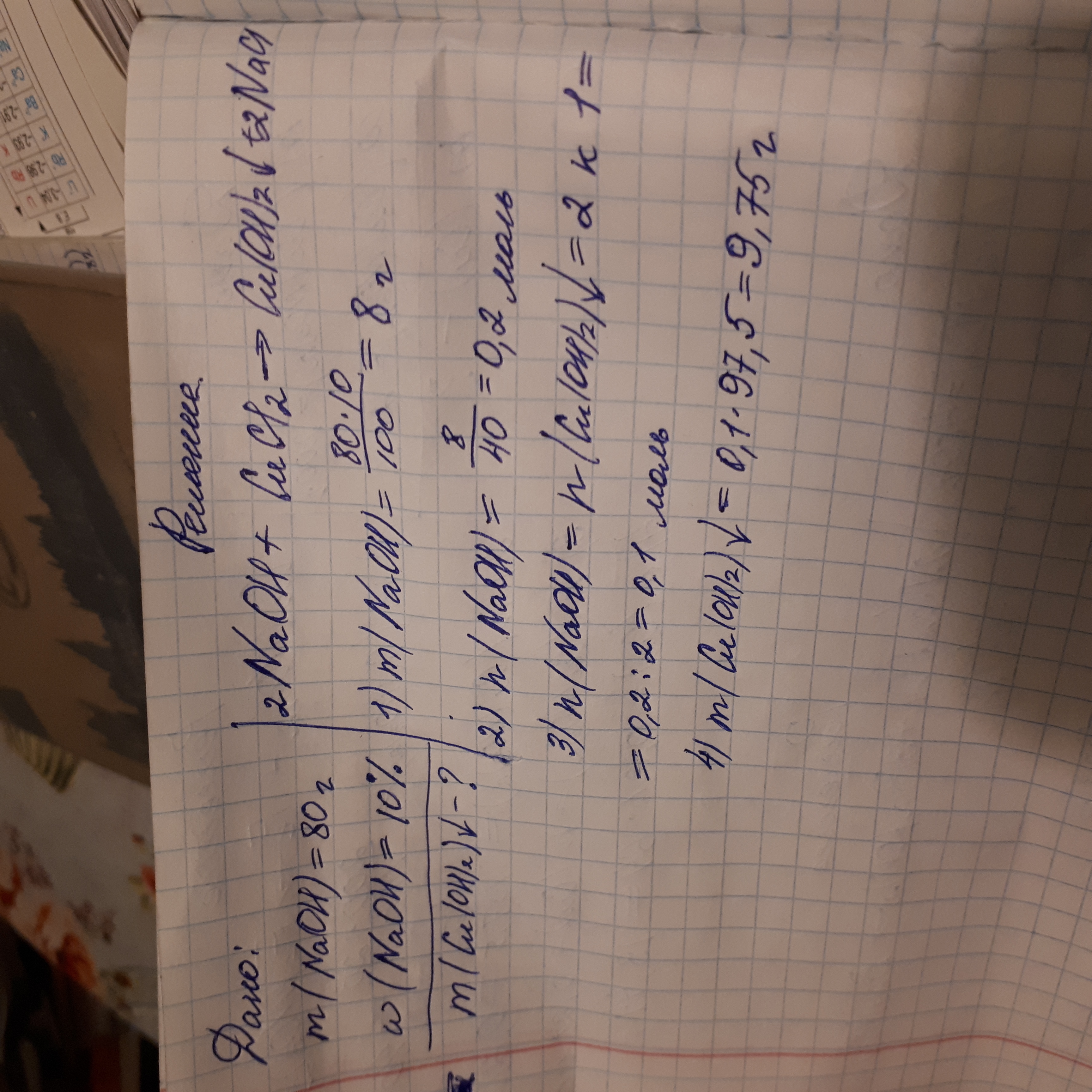 Вычислите массу осадка, который образуется при действии избытка раствора хлорида меди (II) на 80 г 10%- го раствора гидроксида натрия.