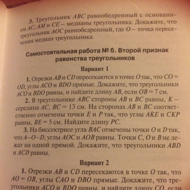 отсюда следует, что треугольники ACO. и DOB равны (по двум сторонам и углу между ними)