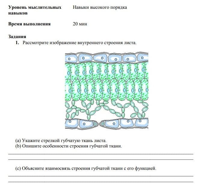 b. Рыхло расположенные клетки с большим межклеточным пространством. Ее функция газообмен.