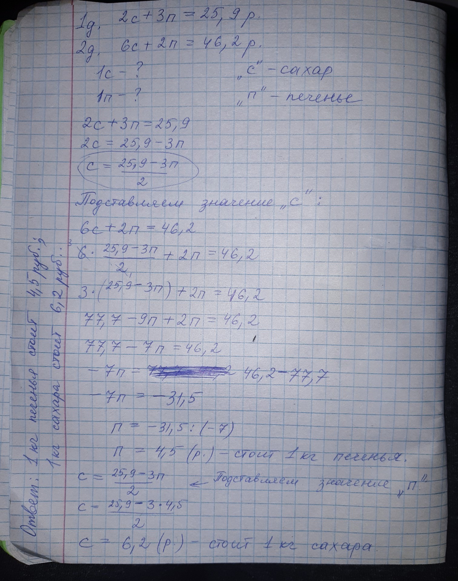 1 день продали 2 кг сахара и 3 кг печенья за все отдали 25р.9к