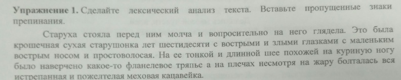 Старуха стояла перед ним молча и вопросительно на него смотрела. Это была крошечная, сухая старушонка, лет шестидесяти, с вострыми и злыми глазками, с маленьким вострыми носом, и простоволосая. На ее тонкой и длинной шее, похожей на куриную ногу, было наверчено какое-то фланелевые тряпье, а на плечах, несмотря на жару, болталась вся истрепанная и пожелтелая меховая кацавейка.