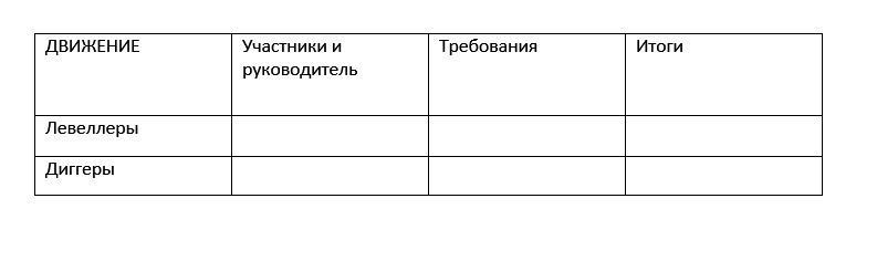 Заполните таблицу пожалуйста по истории. Таблица называется Движение протеста в Англии