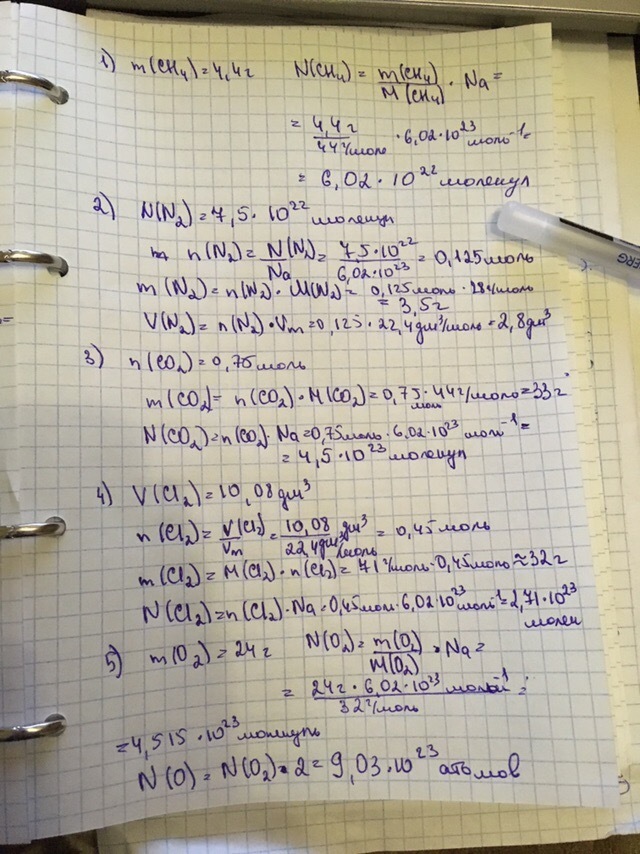 2 Найдите массу и объем (н.у.), который имеют 7,5 ·1022 молекул азота.