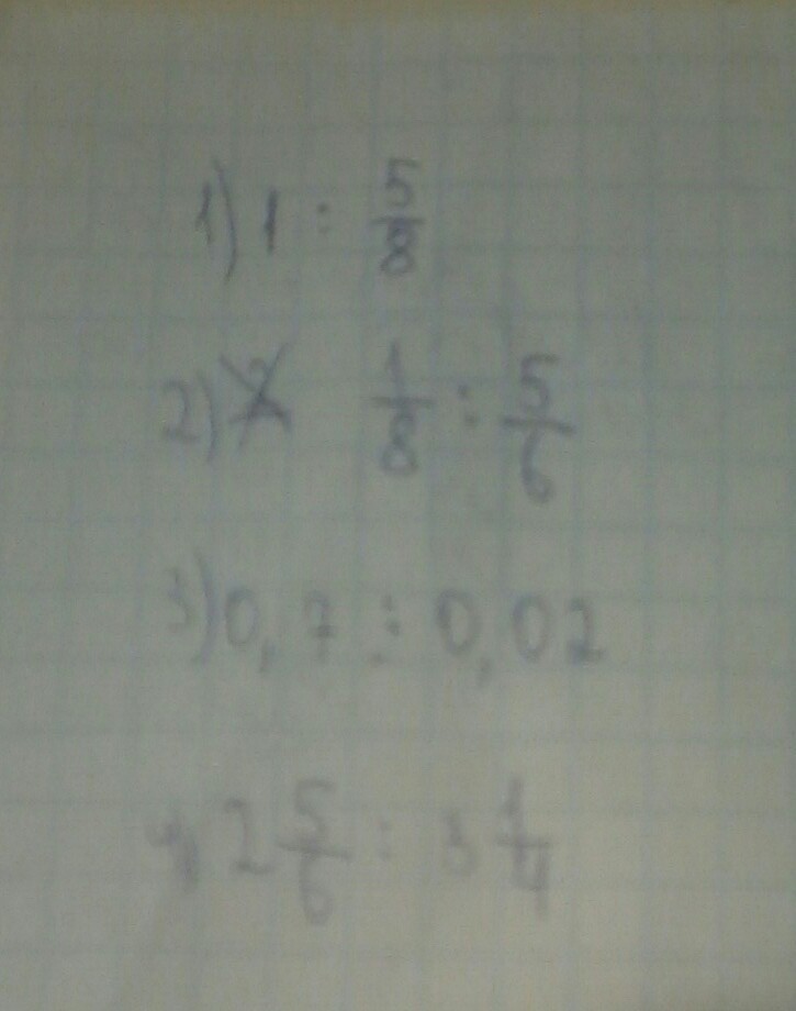 frac{1}{8}  div  frac{5}{6}  =  frac{1}{8}  times  frac{6}{5}  =  frac{3}{20}
