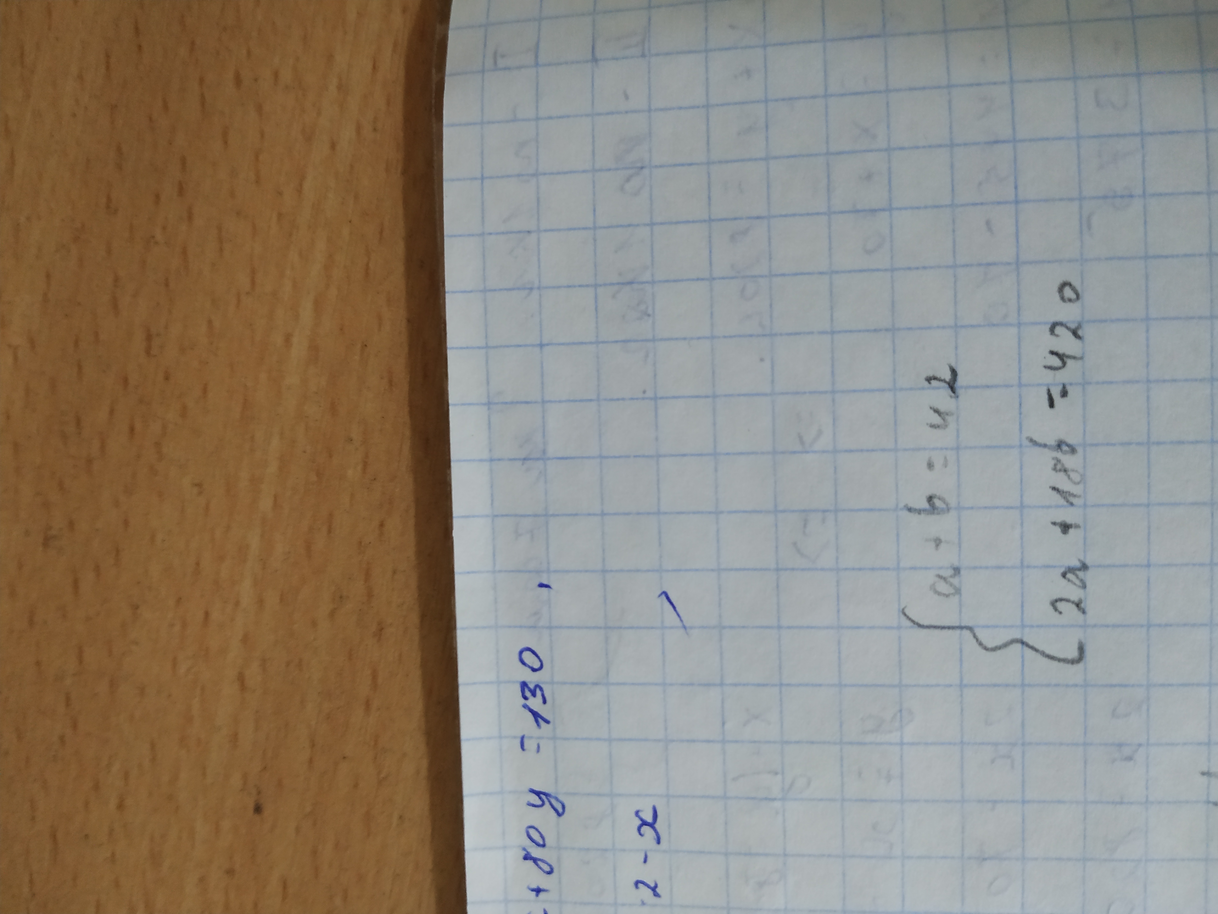 а+в=42 а=42-в, второе ур-е сократим на 2, а+9в=210 и а=42-в подставим в это ур-е, 42-в+9в=210, 8в=168, в=21, а=42-21=21 ответ (21;21)