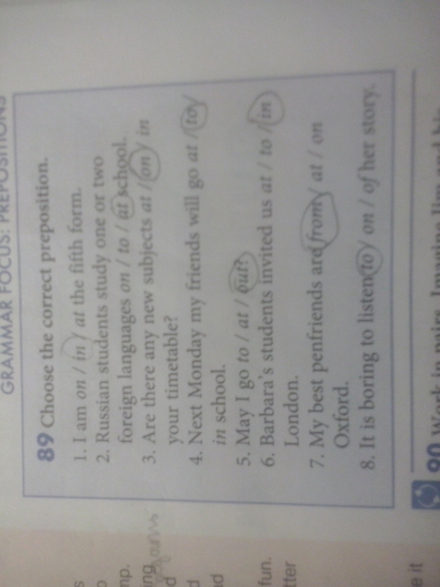 3. В твоем расписании есть какие-нибудь предметы ? (подойдет in, так как он употребляется с абстрактными или