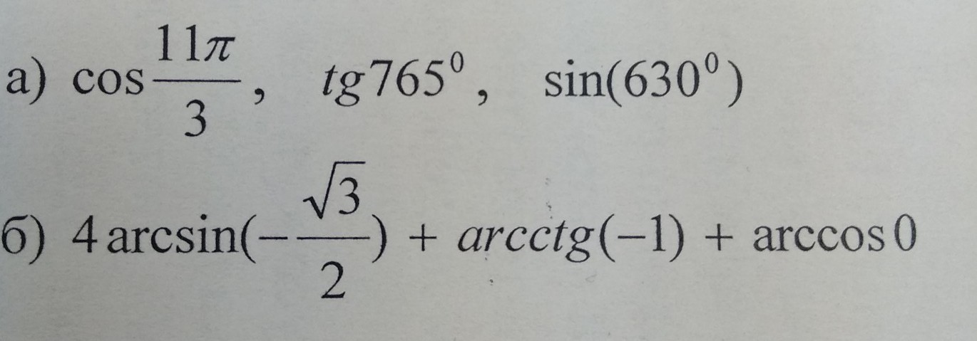 b)4arcsin(-√3/2)+arctg(-1)+arccos0=
