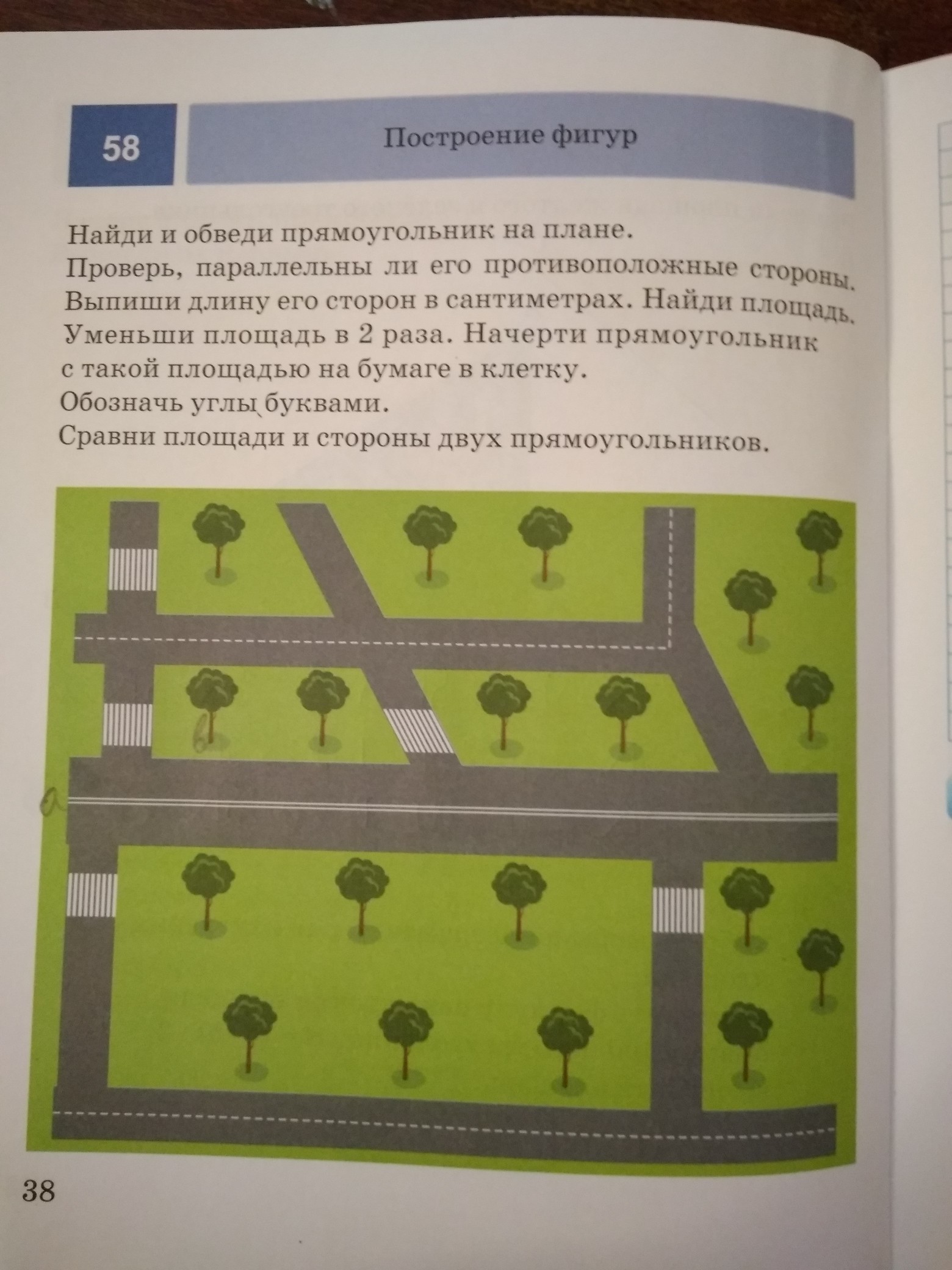 Смотрим на формулу и видим, чтобы уменьшить площадь в 2 раза, можно поделить длину или ширину пополам.