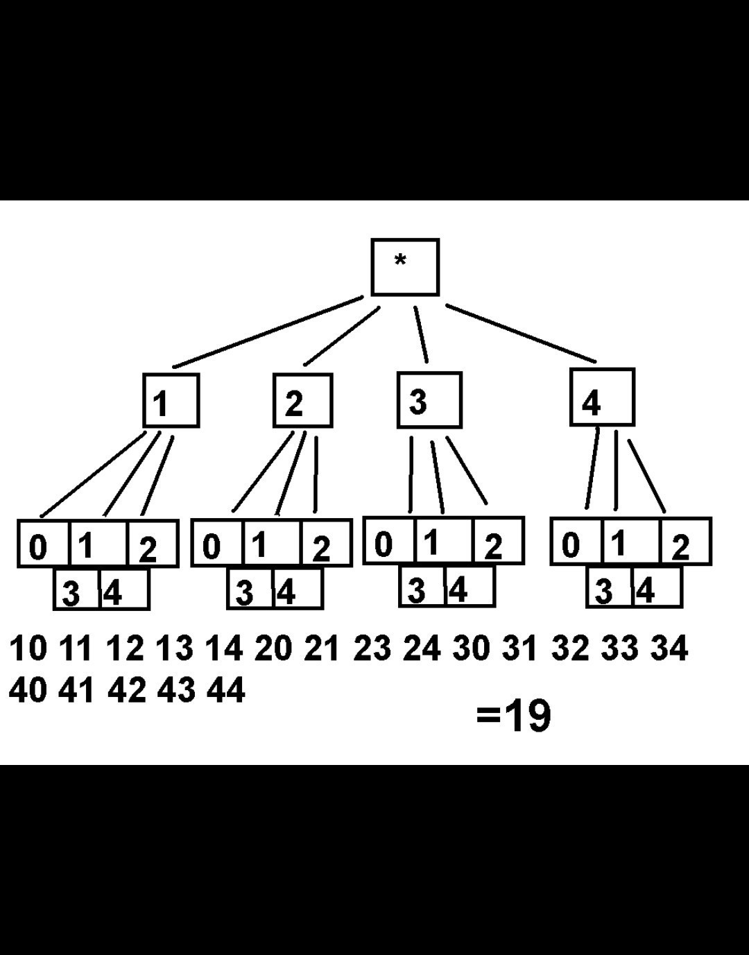 сколько двузначных чисел можно составить из цифр 0,1,2,3,4 с повторением в виде дерева