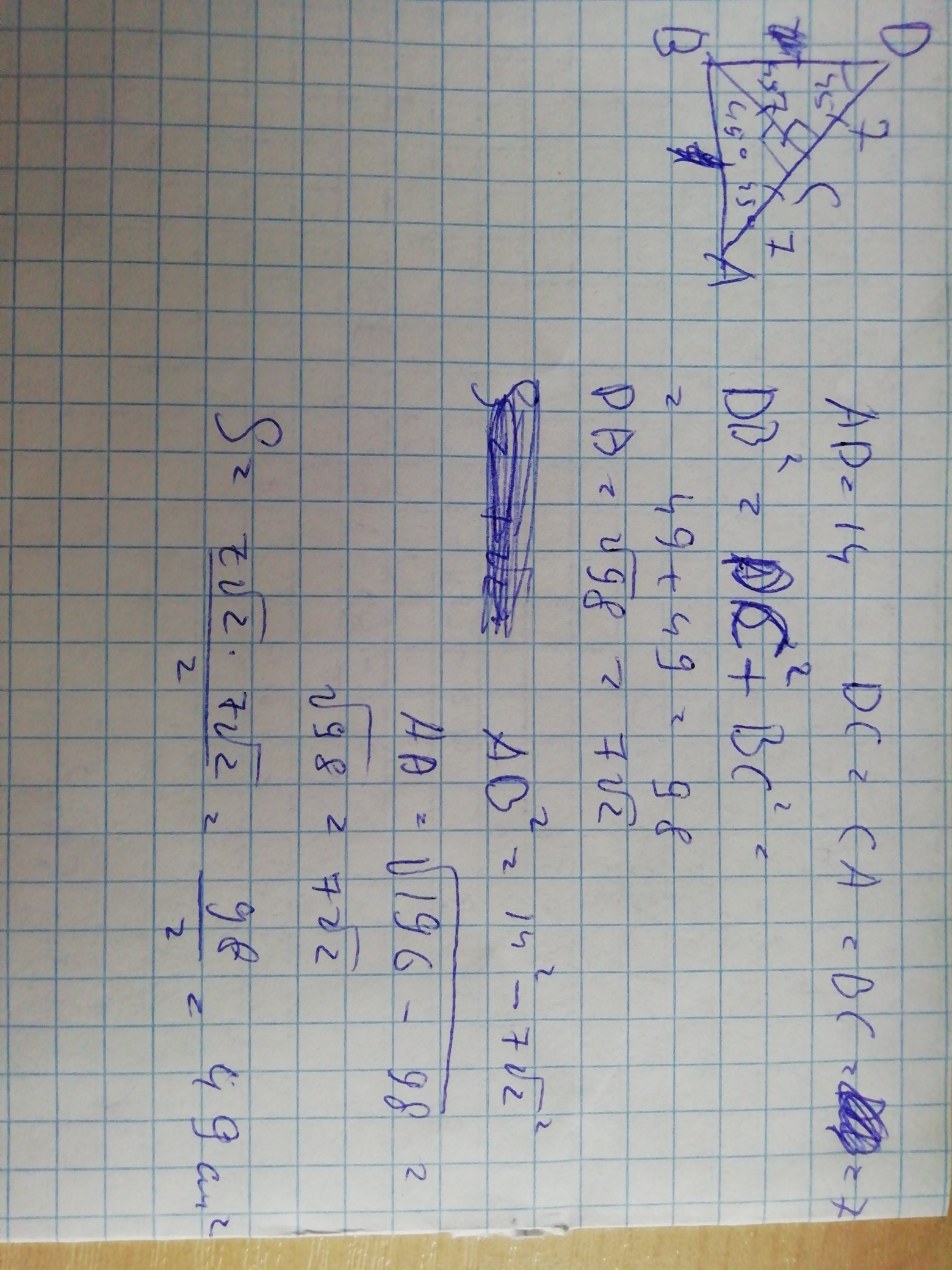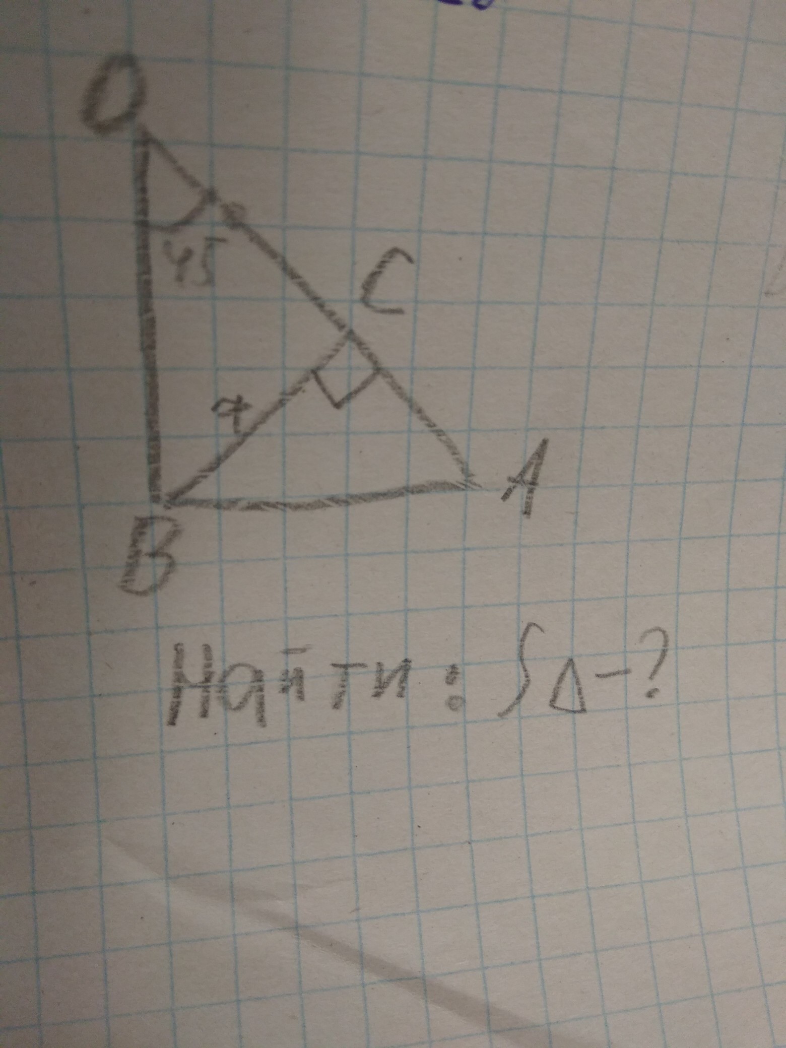 Так как там 45 и высота 90 то второй угол 45 значит это равнобедренный треуг и там две стороны по 7.