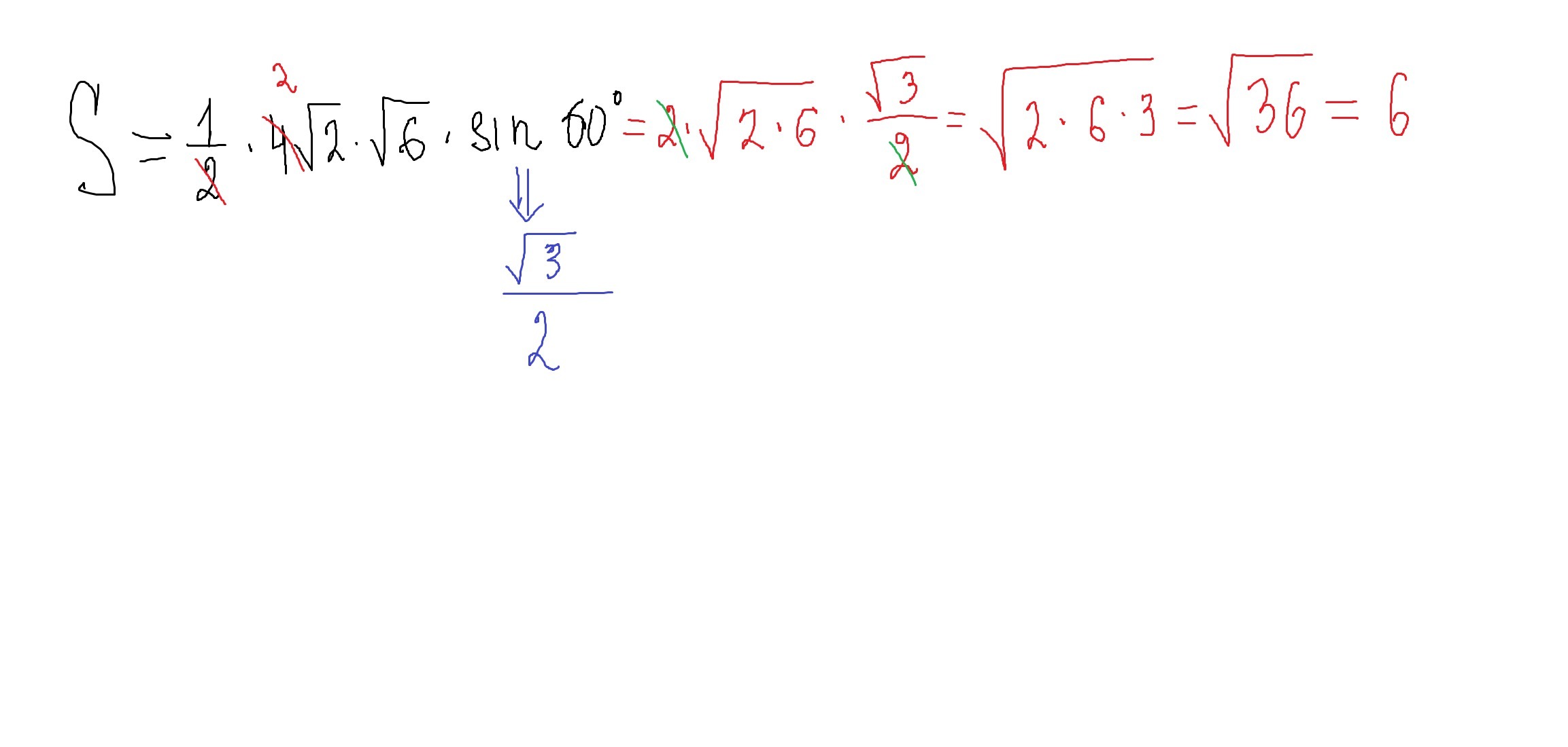 площадь треугольника равна половине произведения длин сторон умноженного на синус угла между ними.В данном случае