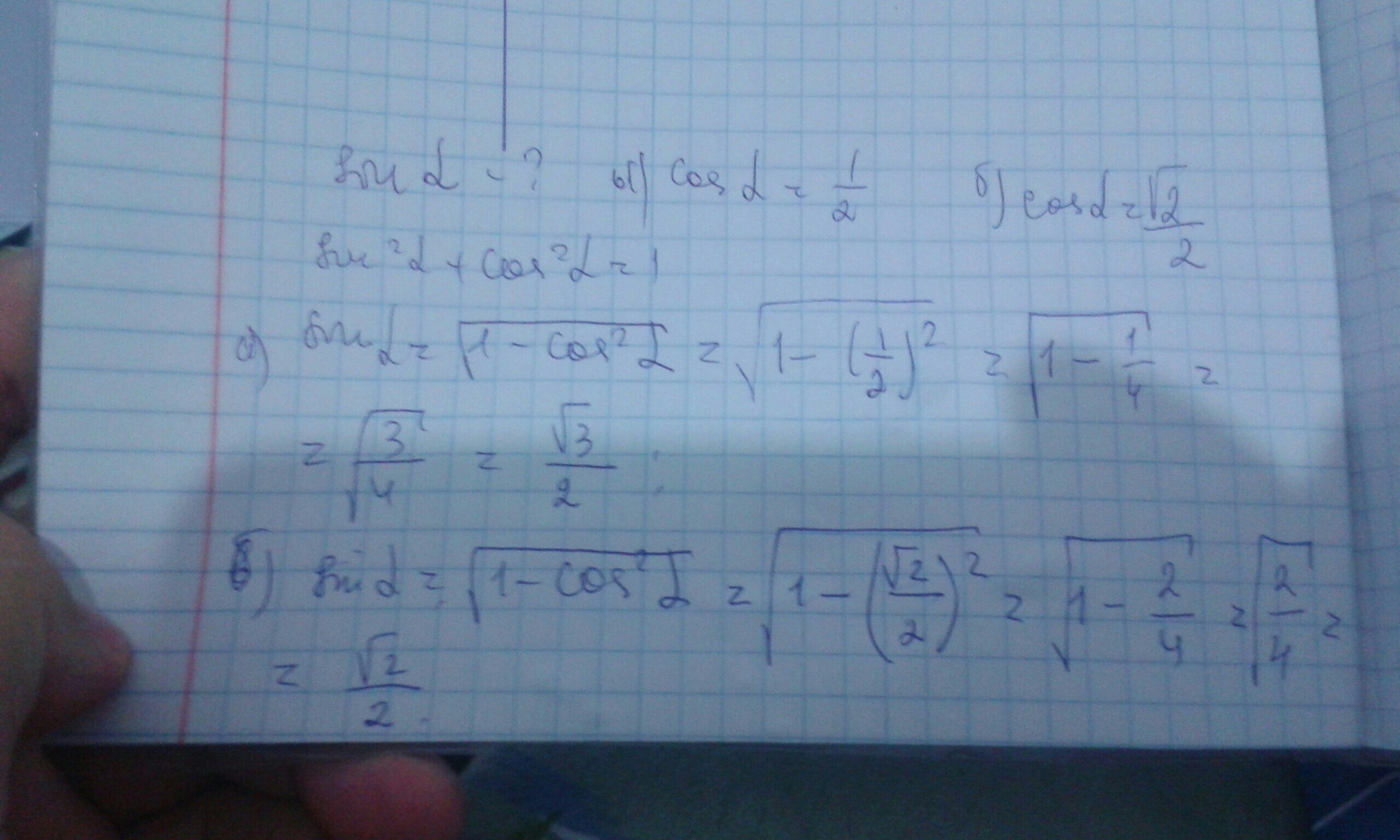 Найдите sinA, если: a) cosA = 12 b) cosA =2 под корем/2
