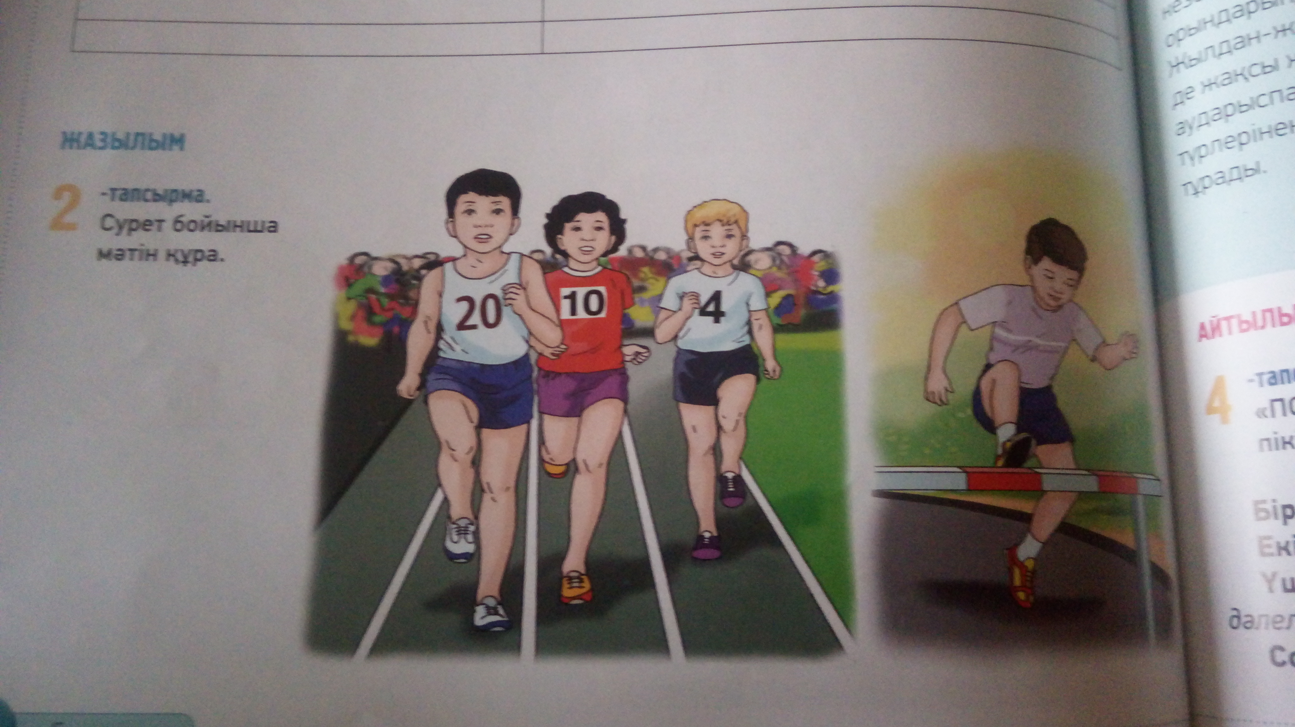Менің жақсы көңіл-күйім бар, бүгін бізде бәсекелестік бар. алдымен біз қашықтықты жүгіруге тура келеді. содан кейін біз бірнеше минут демалды, тағы бір тапсырма болды. кедергілерден өту керек болды. тіпті бұл жаман емес еді, бірақ біз басқардық. содан кейін екінші орын басталады, ұзын секіруден және жүгіруден секіреді. бірақ басқа команда әлі де бізбен бірге. ол да жақсы жұмыс істейді, бірақ біз жеңеміз деп үміттенемін.