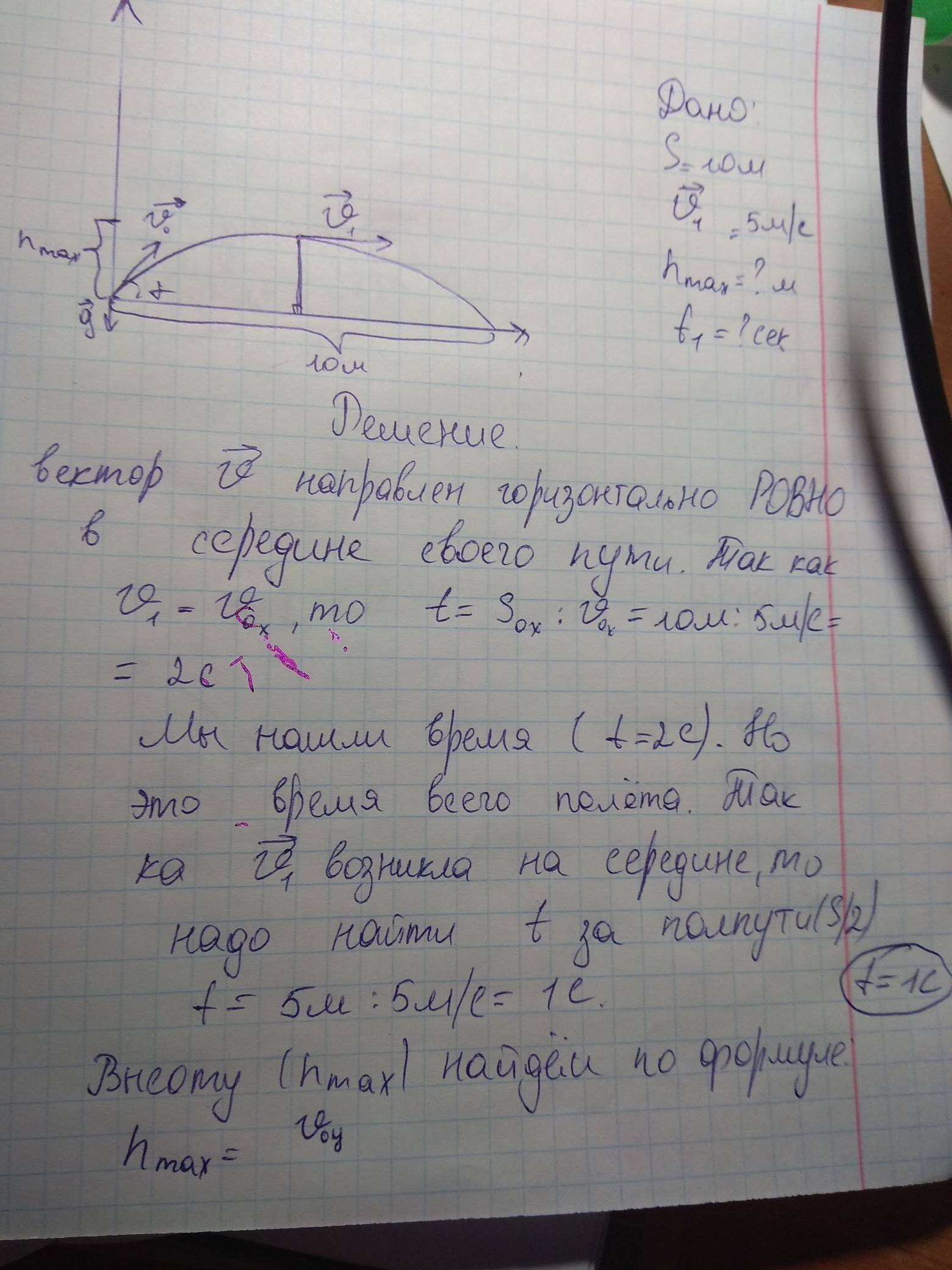 мячик брошенный с горизонтальной поверхности под углом к горизонту упал на поверхность на расстоянии 10 м от места бросания Через сколько времени от момента броска его скорость будет направлена горизонтально и равна 5 м/с . На какую максимальную выстоту поднимется мяч?