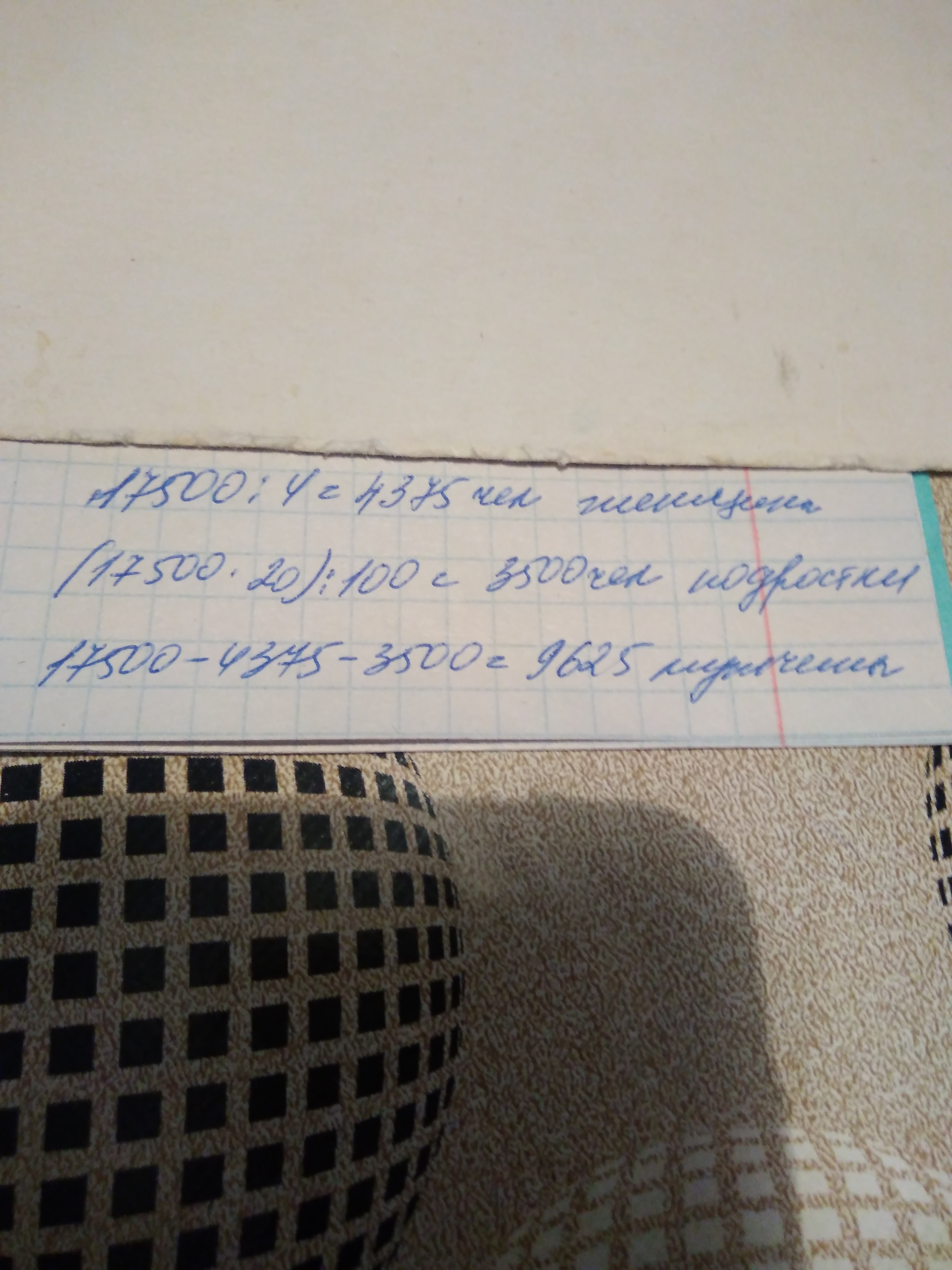 женщины, 20%-подростки. остальные-мужчины. Сколько мужчин присутствовало на соревнованиях во Дворце спорта??