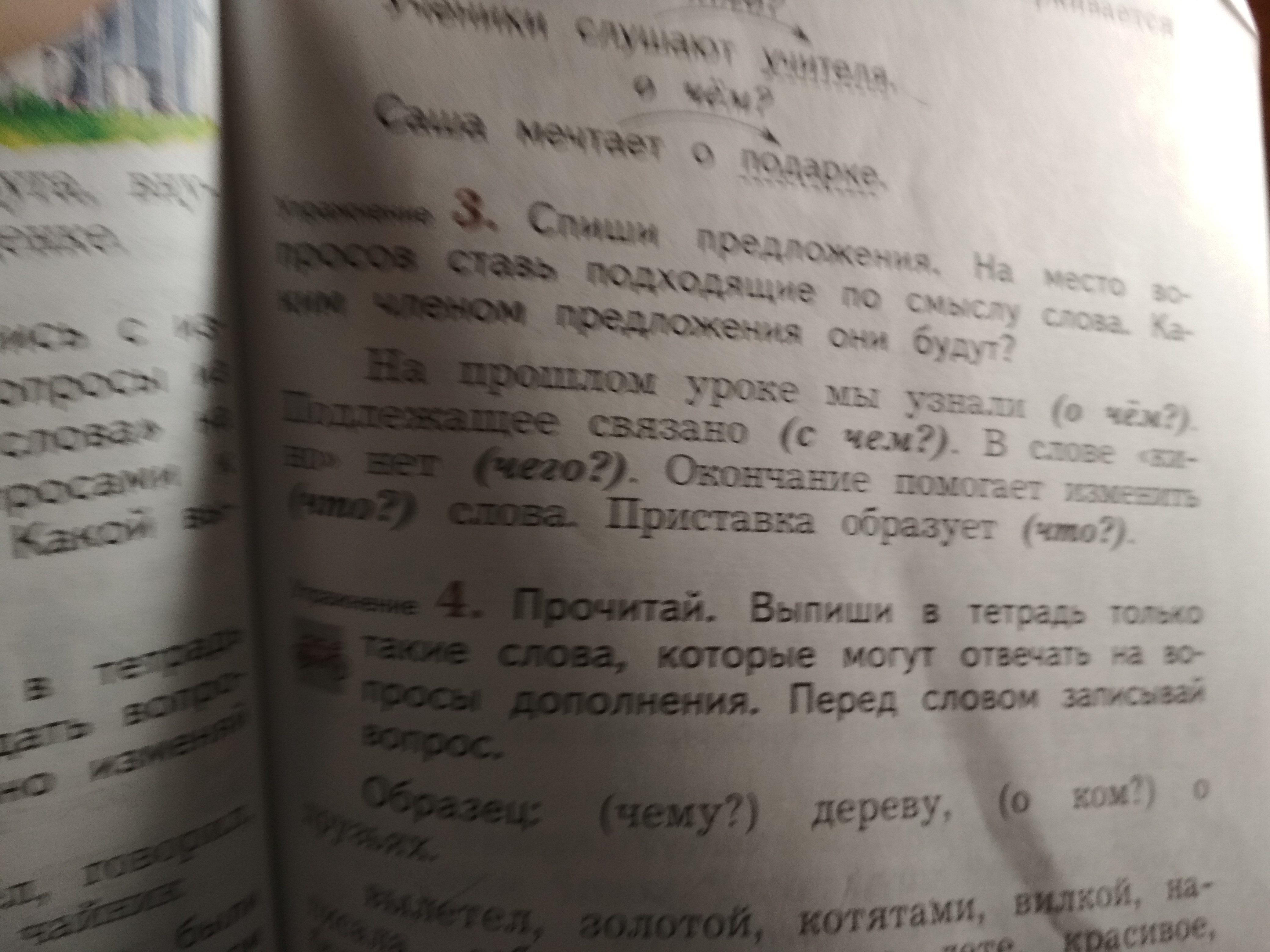 На прошлом уроке мы узнали о делении. Подлежащее связано со сказуемым. В слове "кино" нет шесть букв. Окончание помогает изменить род слова. Приставка образует новое слово.