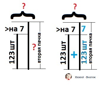 ДАНО: a = 123 шт, b = 7 шт - больше во второй.