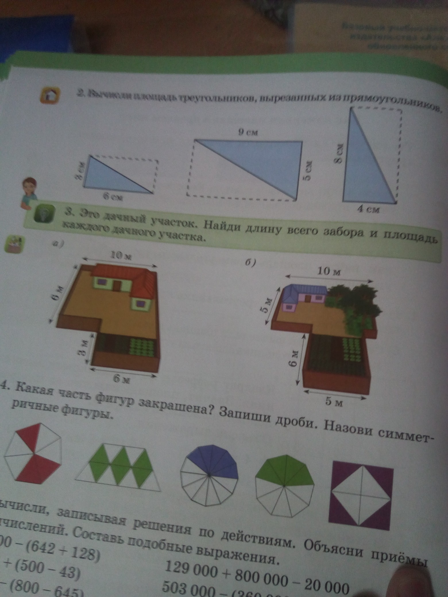 Это дачный участок Найди длину всего забора и площадь каждого дачного участка 10 м 6 м 3 м 6 м