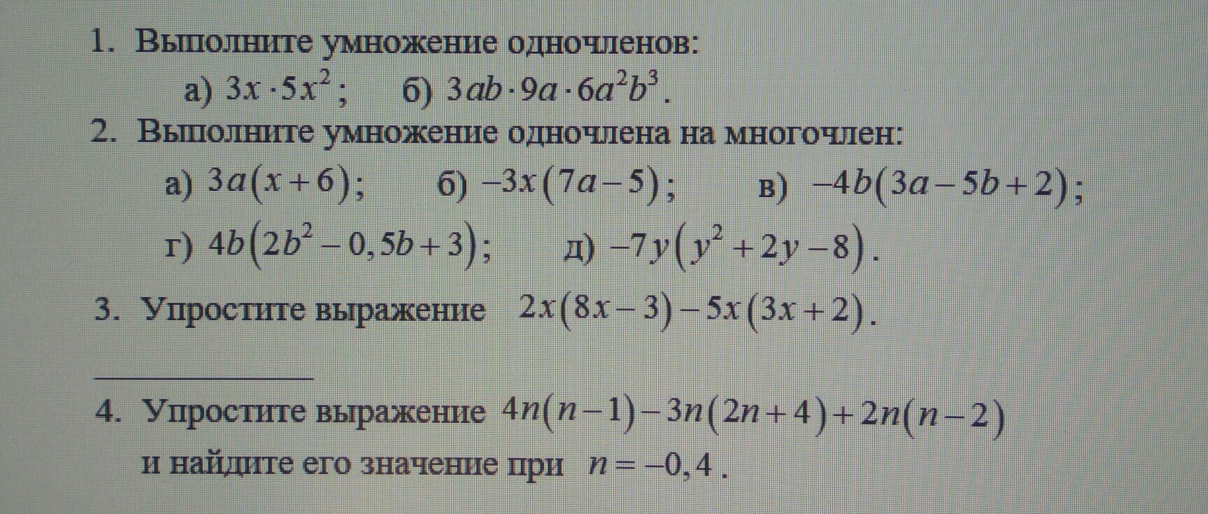 2. А) 3ax + 18a Б) -21ax+15x В) -4b (3a-5b+3)= -12ab+20b²-12b Г) 4b²(2b²-0,5b+3)=8b^4-2b^3+12b² Д) -7y(y²+2y-8)= -7y^3-14y²+56y