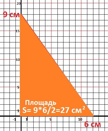 S = 9*6/2 = 9*3 = 27 см² - площадь - решение.