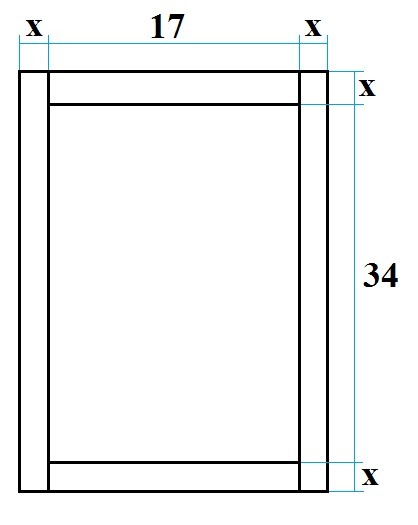 Пусть ширина полей x см. Разделим поля на 4 части (см. рис.). Площадь верхней и нижней частей равна 17x см², площадь каждой из боковых частей - (34+2x)·x см².