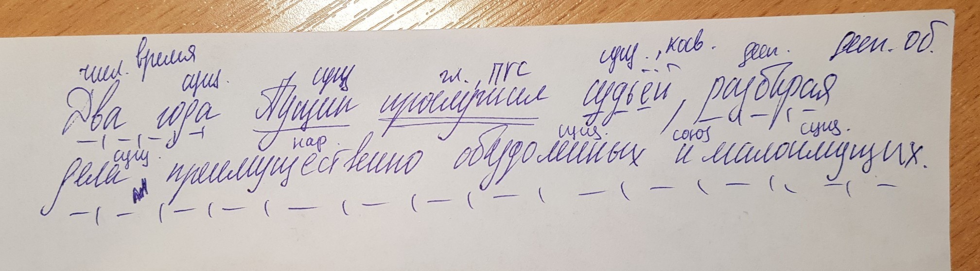 Срочно!!! Синтаксический разбор Два года Пущин прослужил судьей разбирая дела преимущественно обездоленных и малоимущих