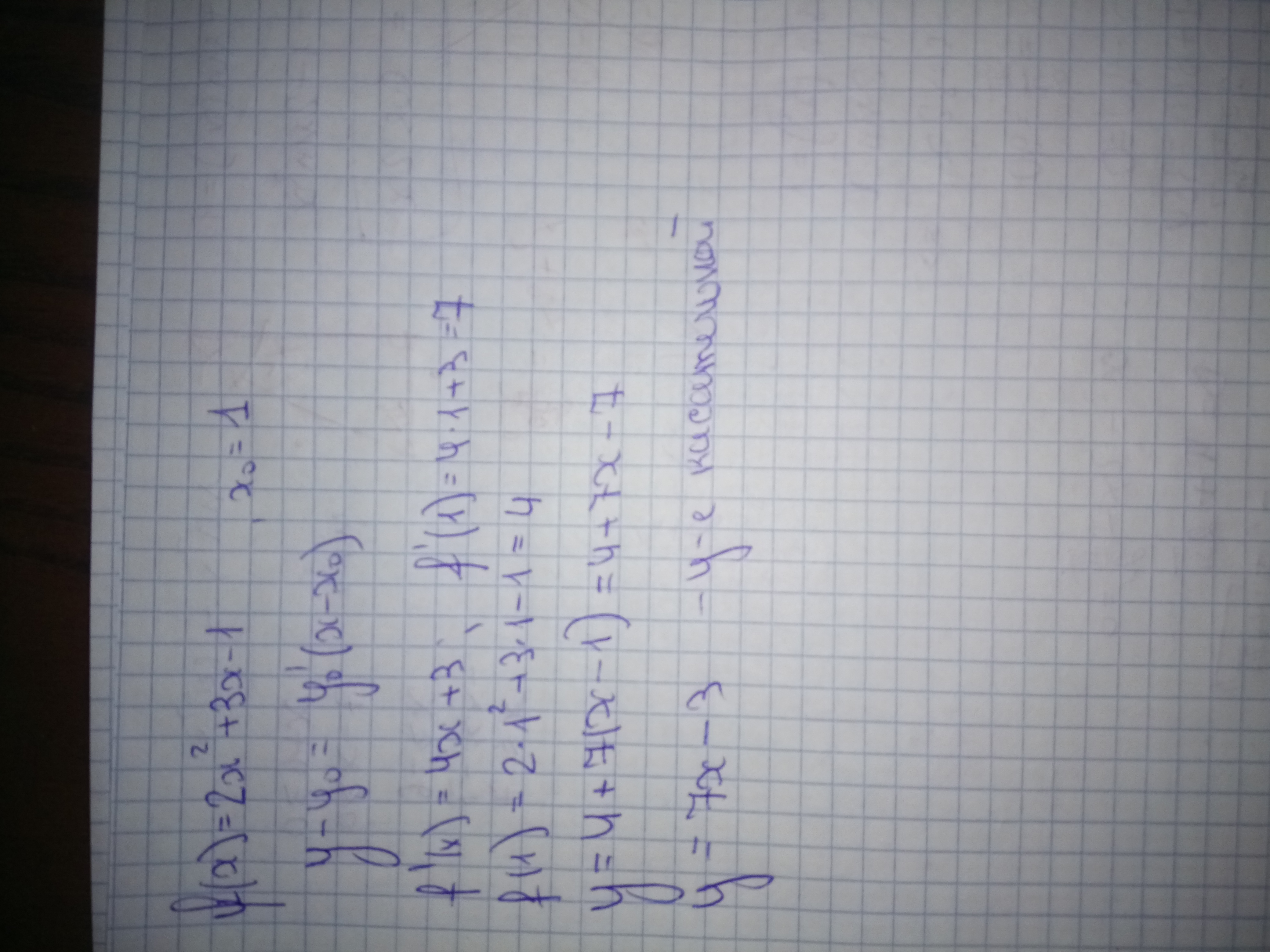 Написать уравнение касательной к графику функций f(x)=2x^2+3x-1 в точке x^0=1