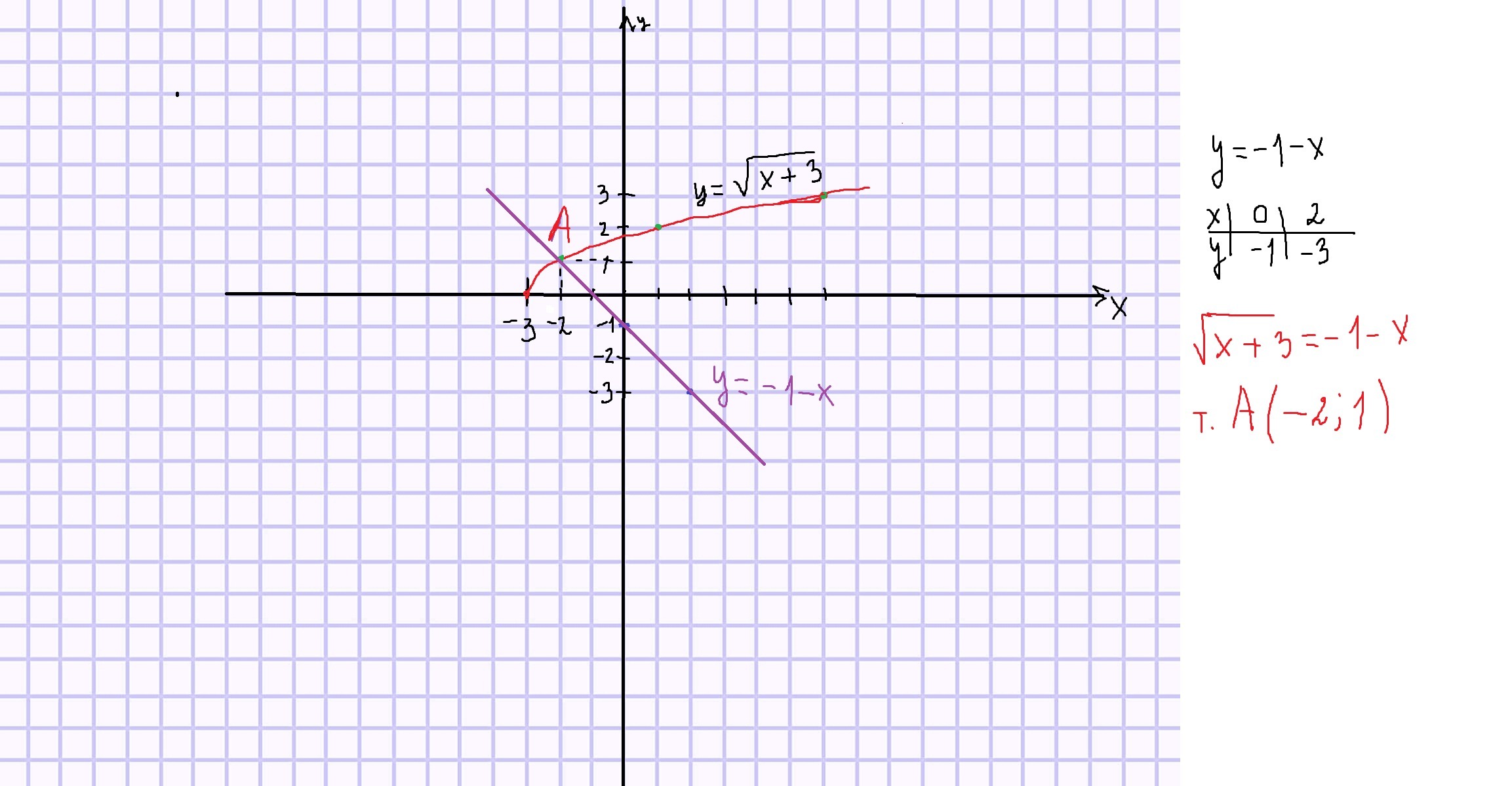чтобы решить эти уравнения графически,надо построить графики двух функций у=√х+3 и у=-1-х
