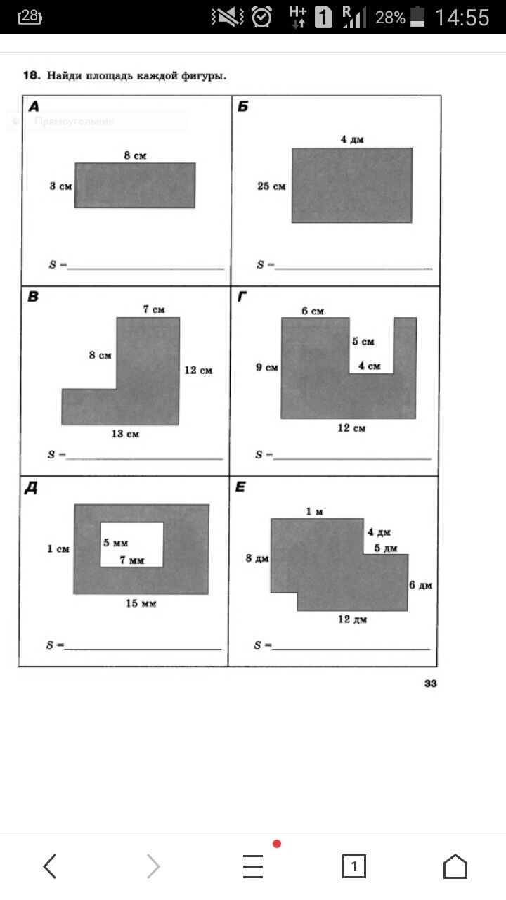 там находишь площадь большой фигуры и вычитаешь из нее площадь моленькой (пустая площадь внутри фигуры)