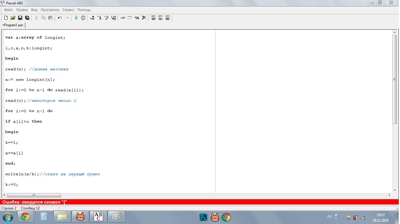 if (a[i]>c) then begin s:=s+a[i]; k:=k+1; end;