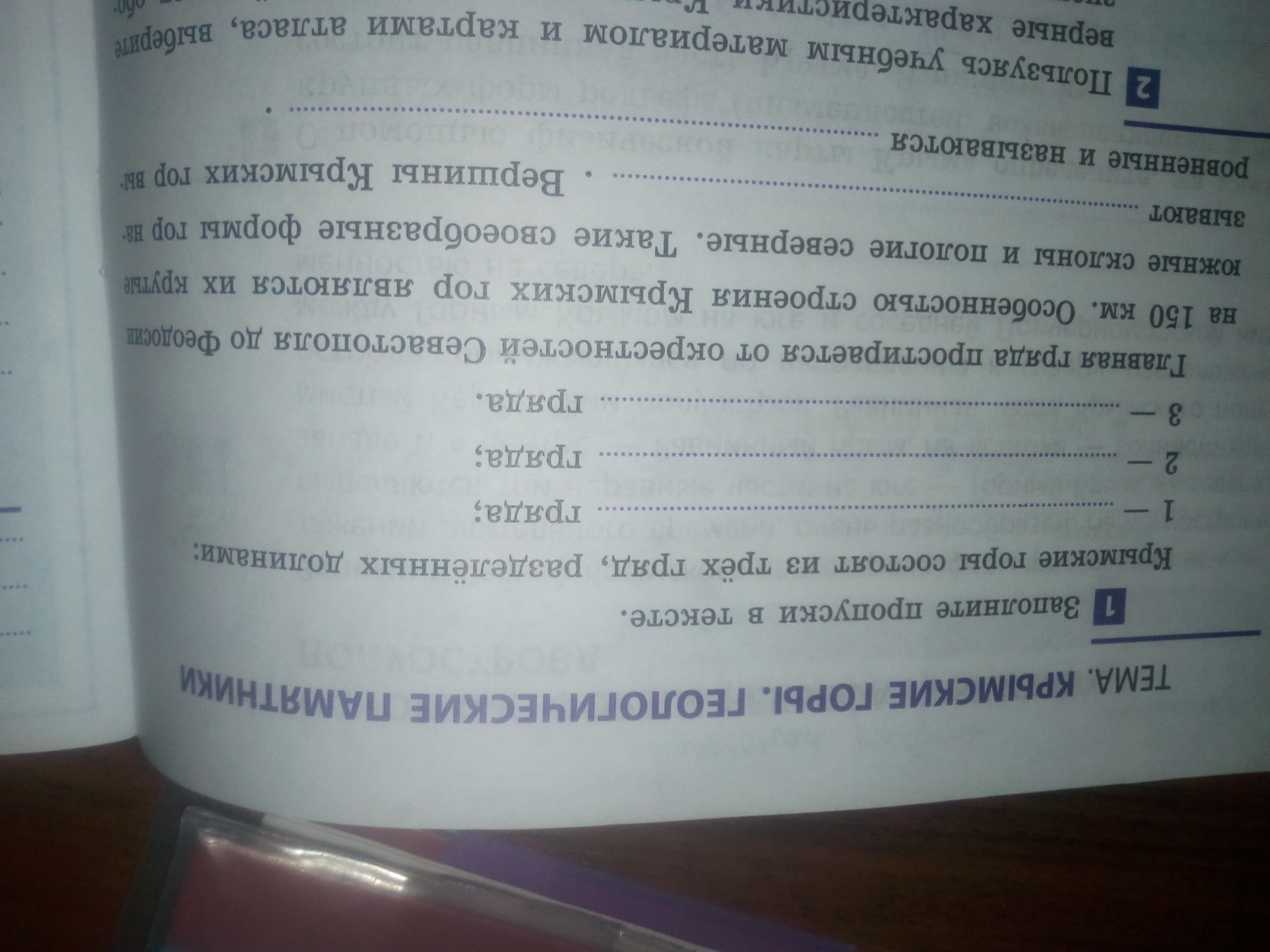 Крымские горы образуют три параллельные гряды, имеющие направление с северо-востока на юго-запад, разделённые двумя продольными долинами. Все три гряды имеют одинаковый характер склонов: с севера они пологи, а с юга круты.