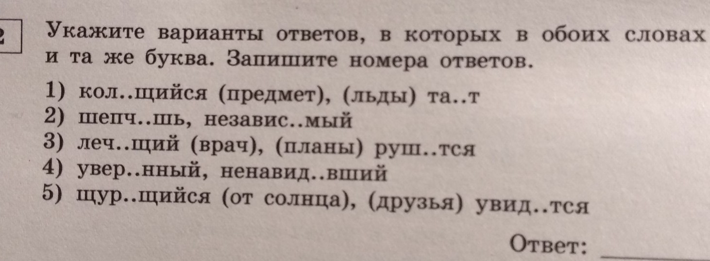 Укажите варианты ответов, в которых в обоих словах одного ряда пропущена одна и та же буква. Запишите номера ответов.