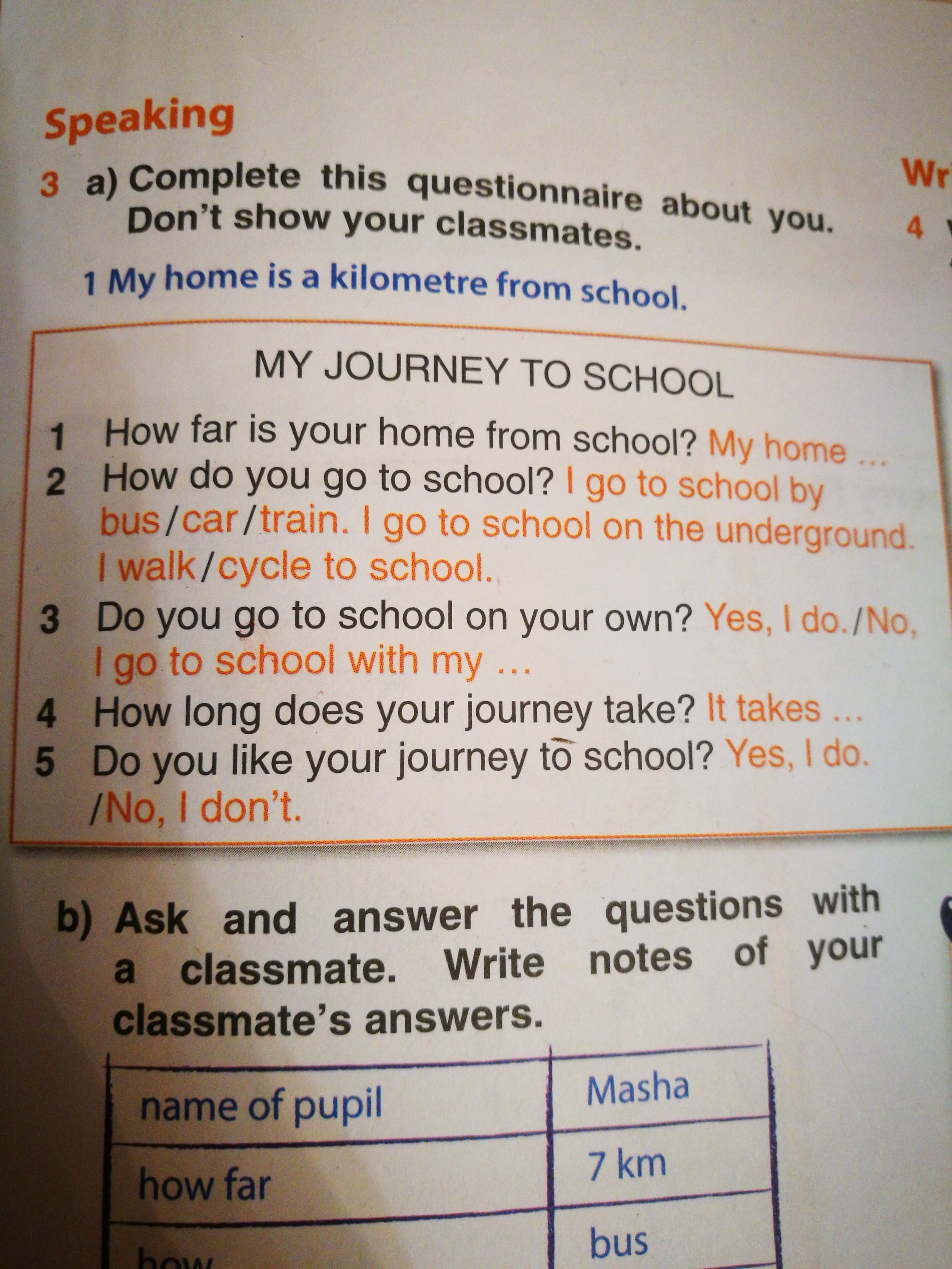 2. Как ты ходишь в школу? Я хожу в школу автобус/машина/поезд. Я иду в школу на метро. Я иду/езжу в школу.