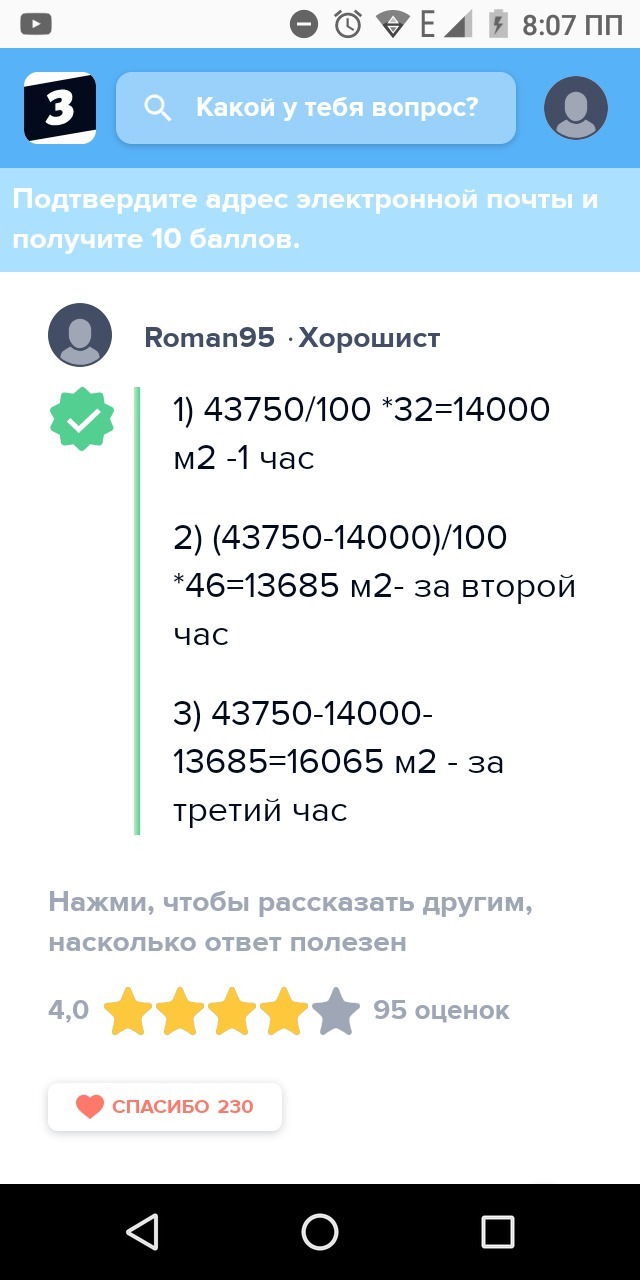 3) 143750 - 14000 - 13685 = 16065 (м2) - за 3 час.