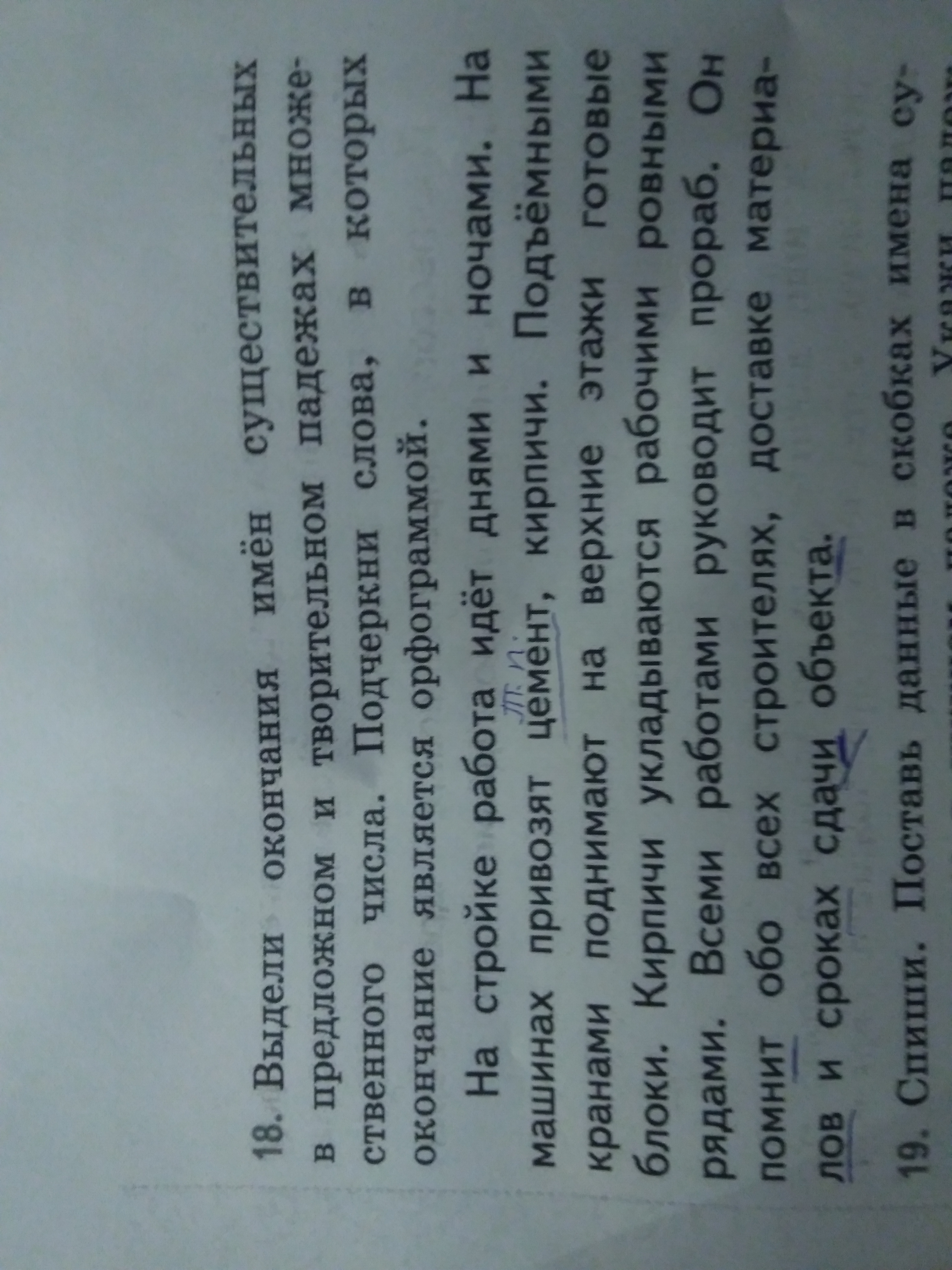 1)днями и ночами-оконч.ЯМИ,АМИ.машинАХ,кпанАМИ,рядАМИ,работАМИ,строителЯХ,срокАХ.