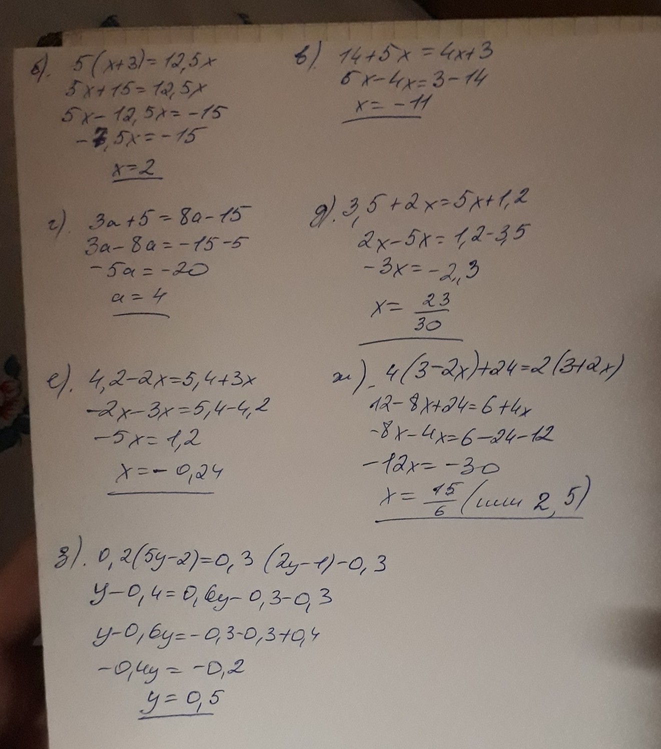 з)0,2(5у-2)=0,3(2y-1)-0,3