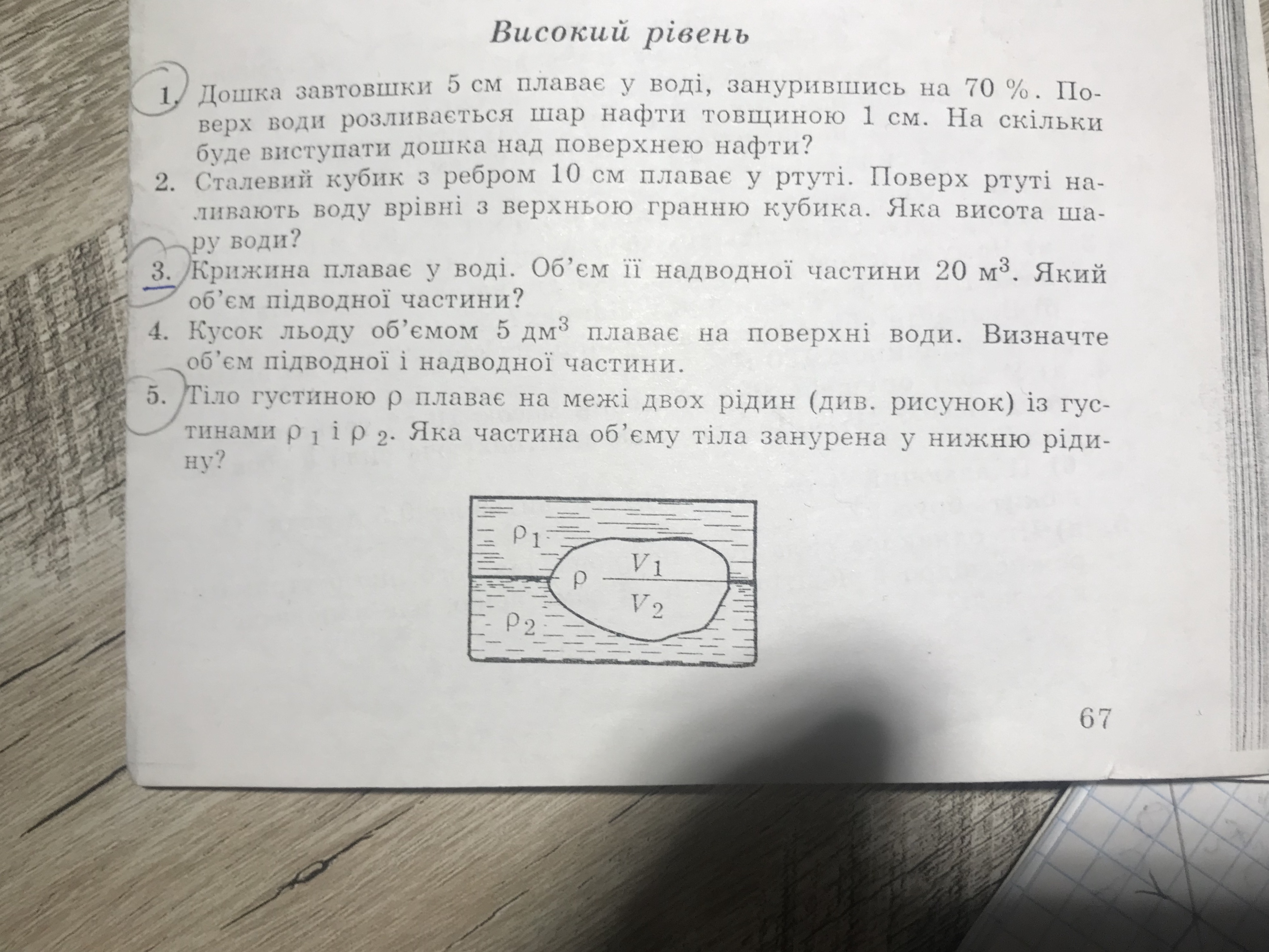 Тело плотностью ρ плавает на границе двух жидкостей с плотностями ρ1 и ρ2(рис. в дополнении).