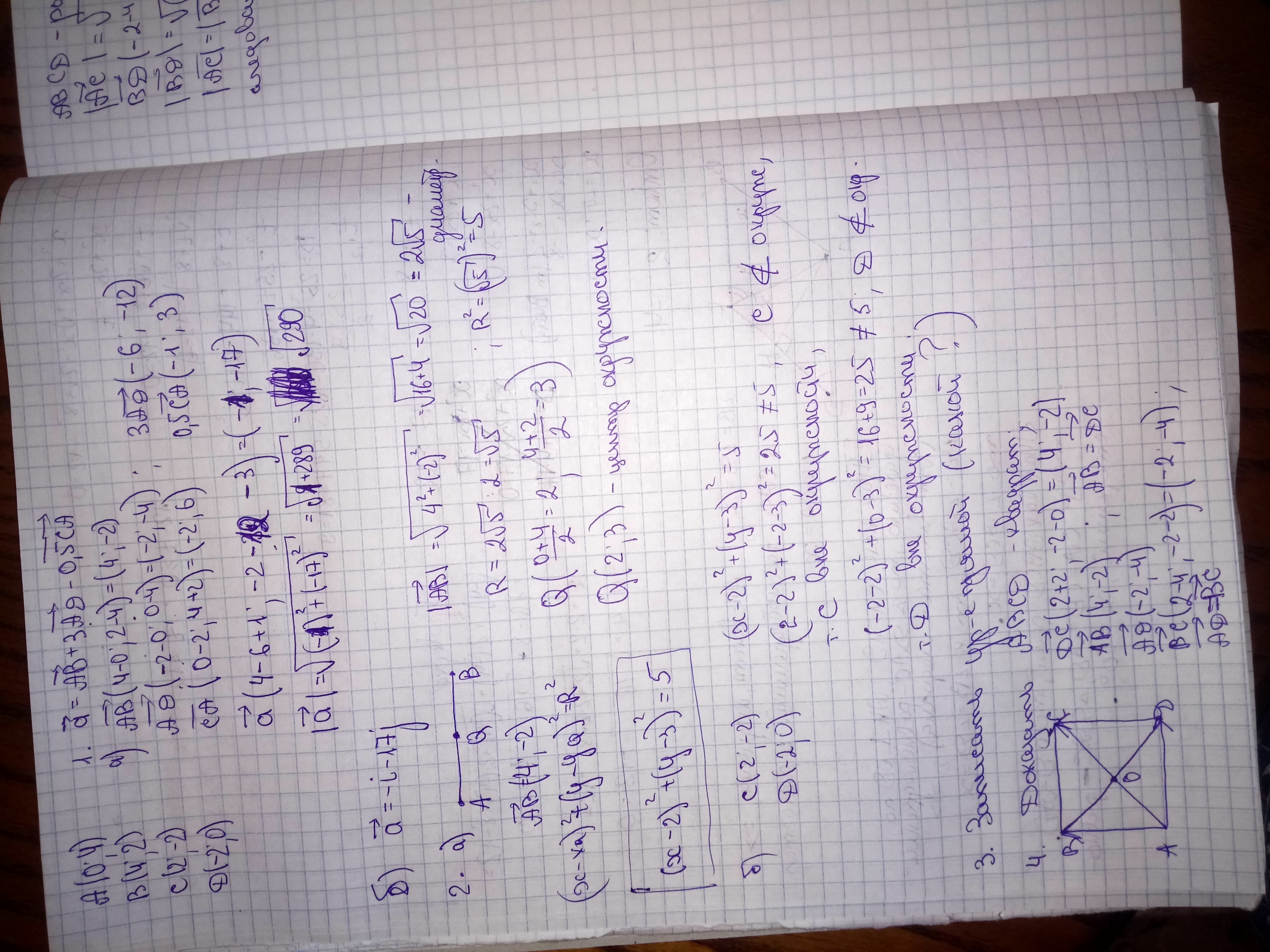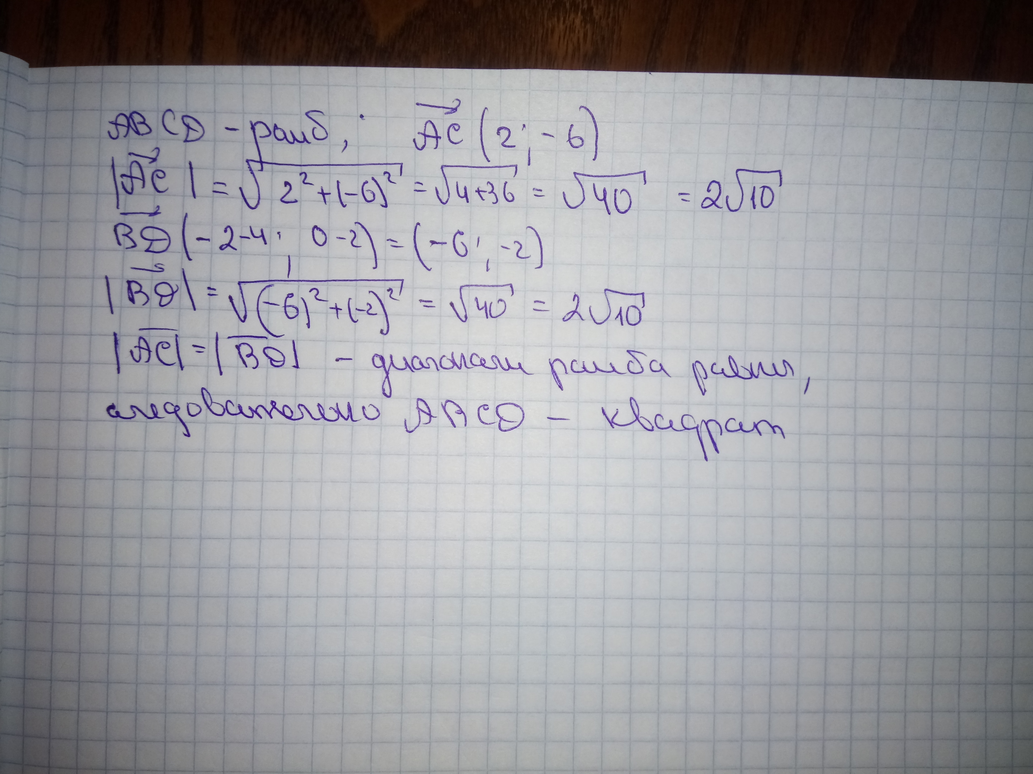 вариант 4 даны точки А(0;4) В(4;2) С(2;-2) Д(-2;0) 1. а)Найдите координаты и длину вектора а=АВ+3АД-0,5СА б)Разложите вектор а по координатным векторам i и j 2. a) Запишите ур-е с диаметром АВ. б) Выясните взаимное расположение окружности и точек С и Д. 3. Запиши ур-е прямой 4. Докажите что АВСД - квадр