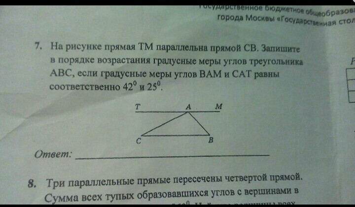 Итак, угол ТАМ будет 180 градусов(развернутый).
