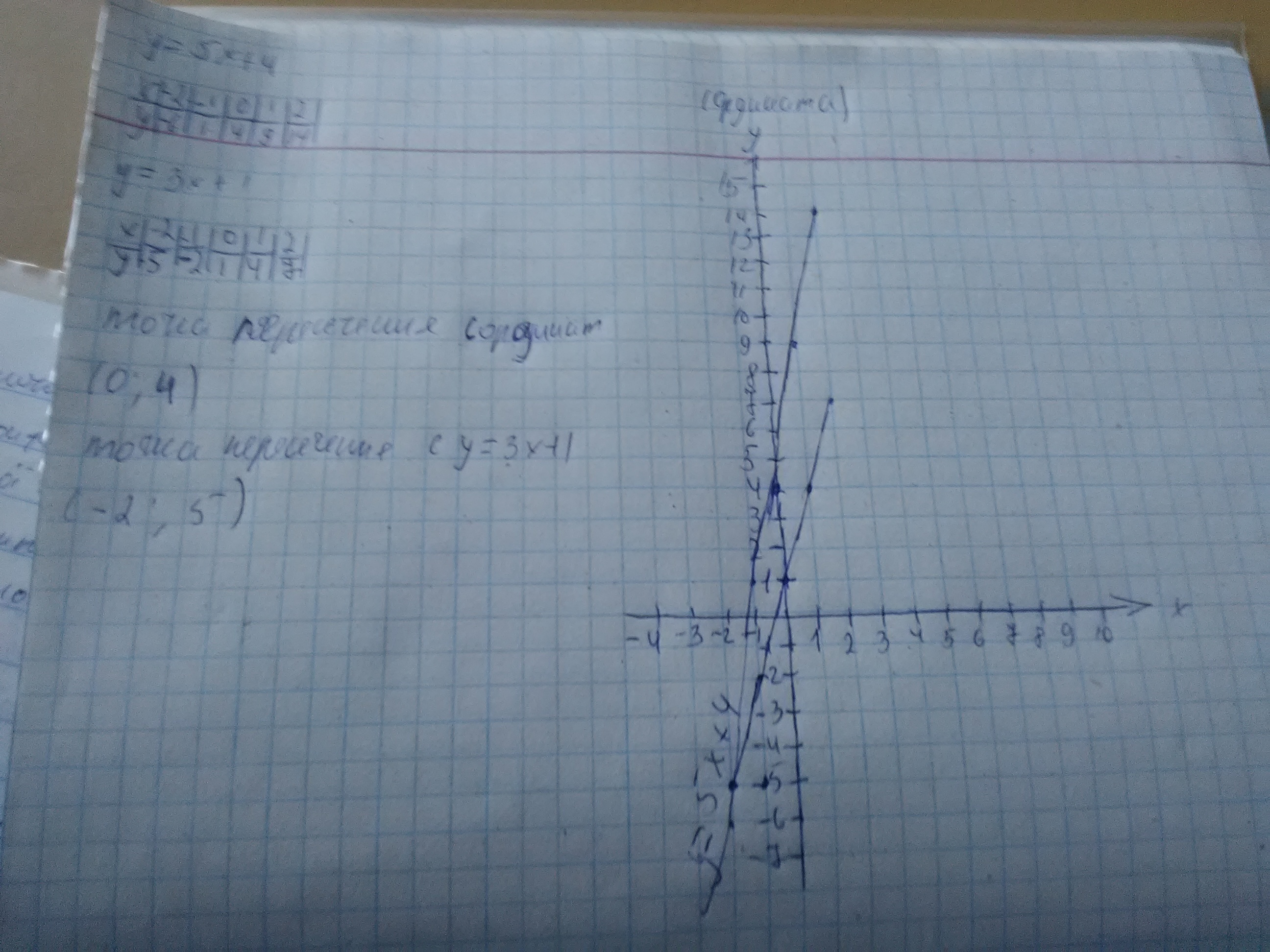 Построй график функции у=-5х+4. А) найти точки пересечения прямой с осями координат. Б) Найти точку пересечения этой прямой с прямой у=3х+1.