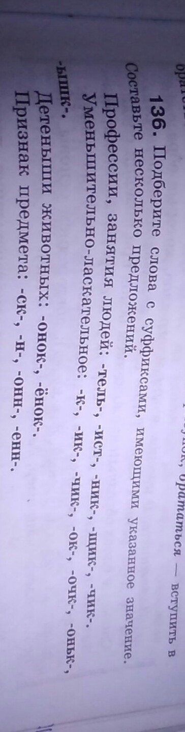 Подберите слова с суффиксами, имеющими указанное значение. Составьте несколько предложений. помогиитее это срочно!!!!!!!