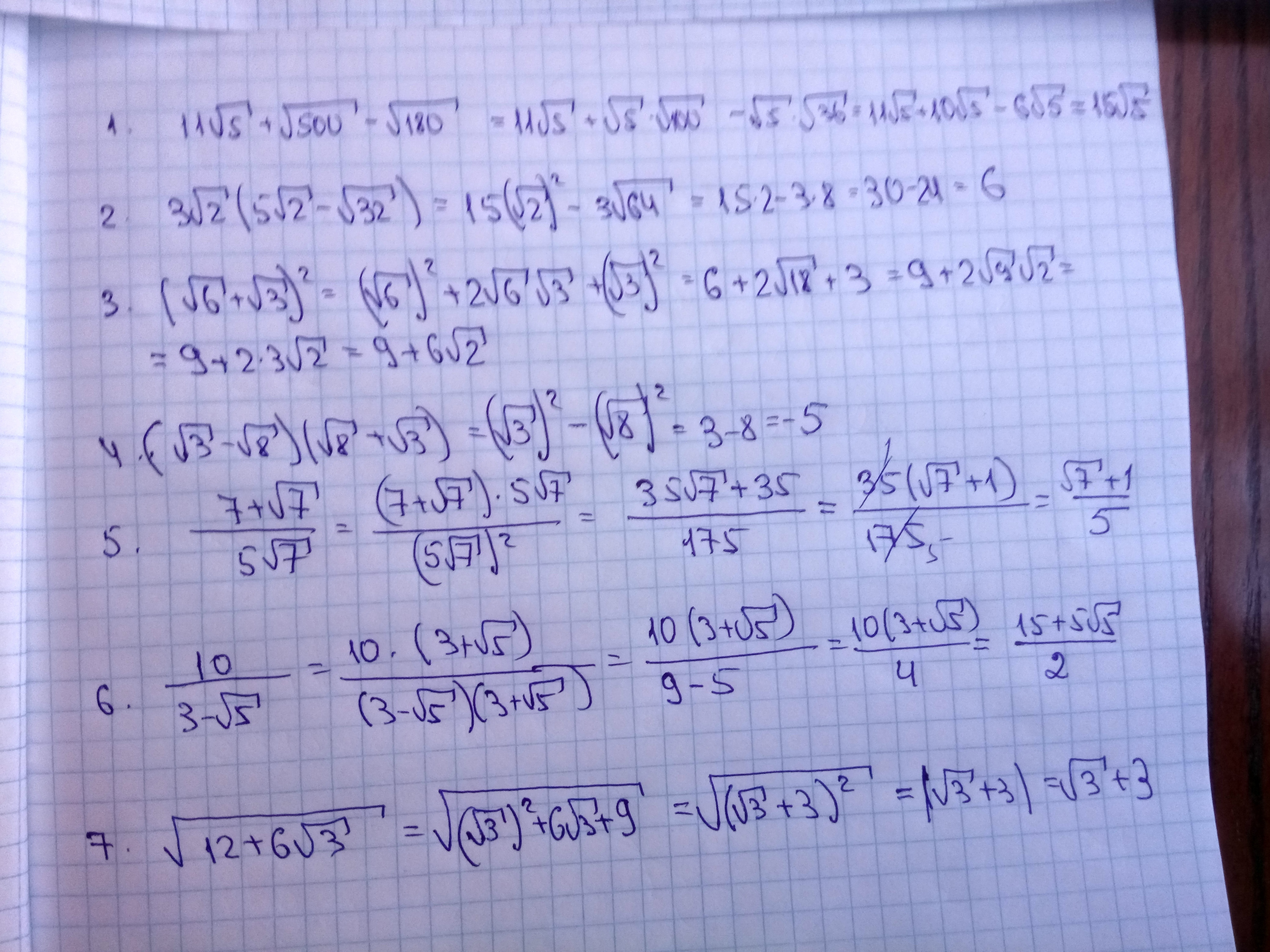 5) 7+√7/5√7 = (7+√7)√7/5√7√7 = 7√7+7/5х7 = 7(√7+1)/35 = √7+1/5
