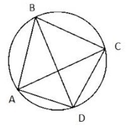 Теорема. Если четырехугольник вписан в окружность, то суммы величин его противоположных углов равны 180°.