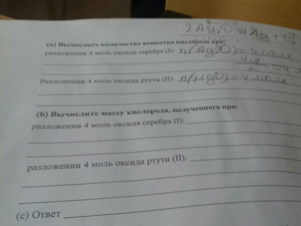 где не понятно слово это "Разложение 4 моль оксида серебра и ртути.Помогите пожалуйста
