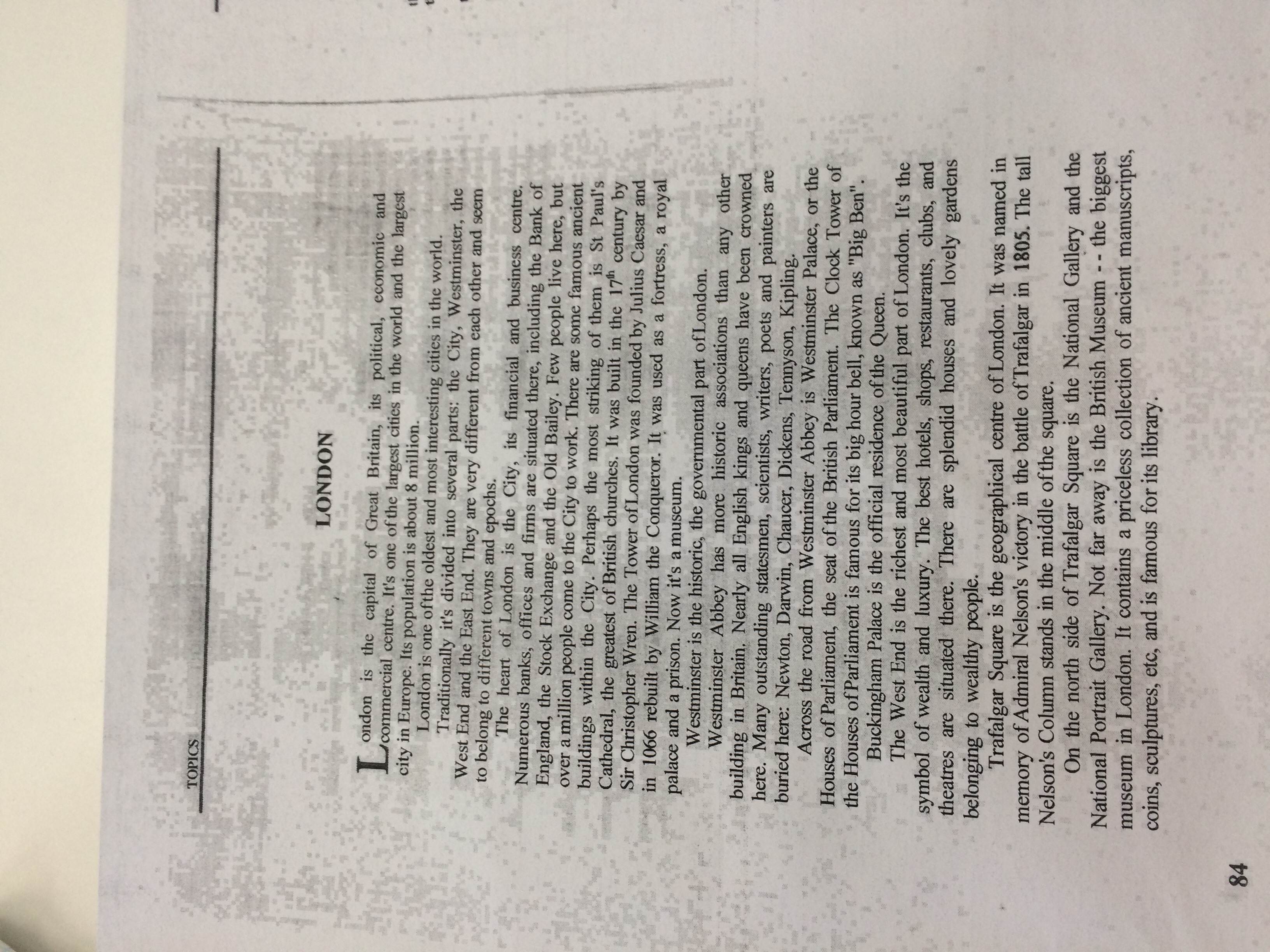 3. There are 4 parts — the City, Westminster, the West End, and the East End;
