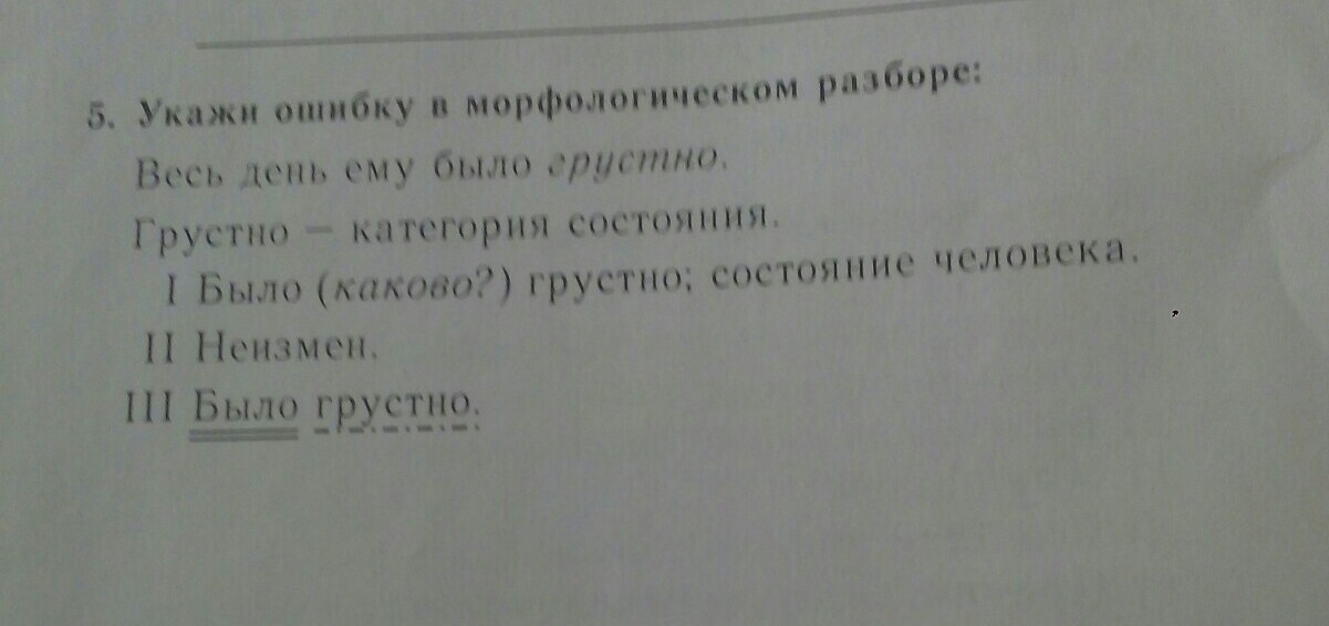 Было грустно - это составное именное сказуемое. Следовательно, ошибка в III пункте: было грустно подчёркивается двумя чертами полностью.