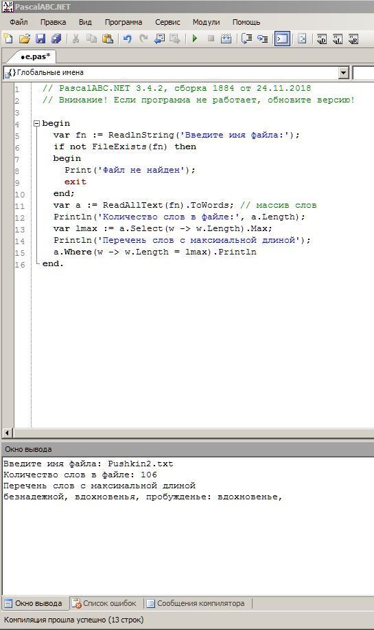 Во втором вложении дается тестовый файл Pushkin2.txt