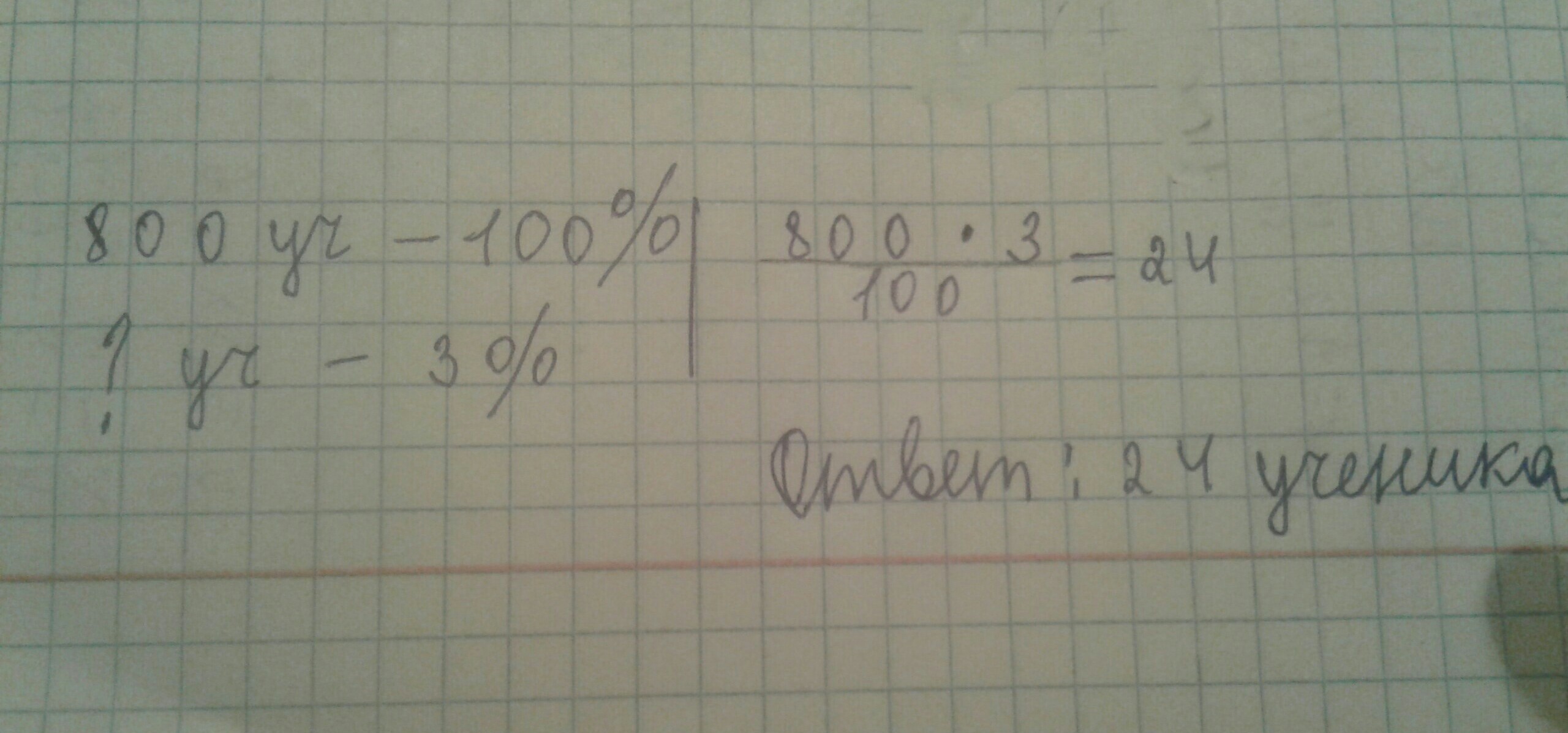 В школе 800 учеников, 3% из которых левши. Сколько учащихся являются левшами? Ответ запишите числом без наименования