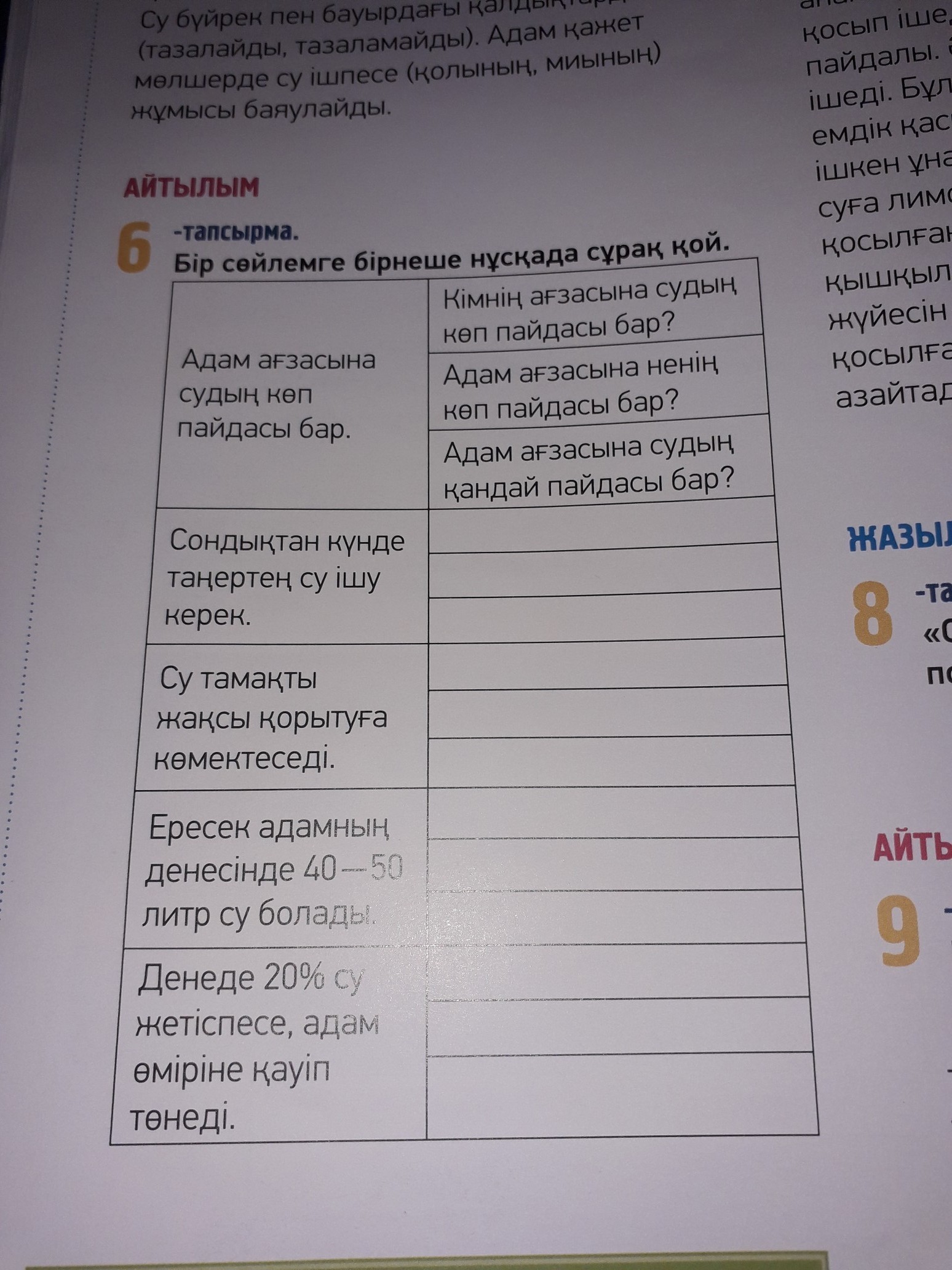 Күнде не істеу керек? Тамақты не жақсы қорутыға көмектеседі? Ересек адамның денесінде неше литр су болады? Денесінде неше пайыз су жетіспесе, адам қауіп төнеді?
